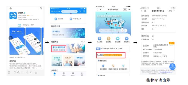 1.前往接种新冠疫苗的师生请事先在浙里办APP查询第一针接种信息,并截图保存:【浙里办】调教→常态化疫情防控→个人防疫:我的接种