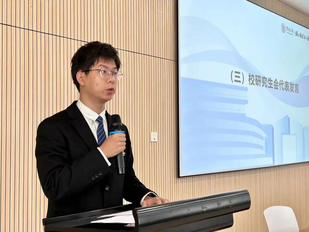 其次,校研究生会主席燕文轩代表调教 研究生会希望新一届潘天寿建设与艺术设计学院研究生会继续秉持“向善尚美,精益创新”的目标,明确“向何处先行”“要如何先行”“以什么先行”,守初心、严作风、办实事,积极主动、敢于担当。
