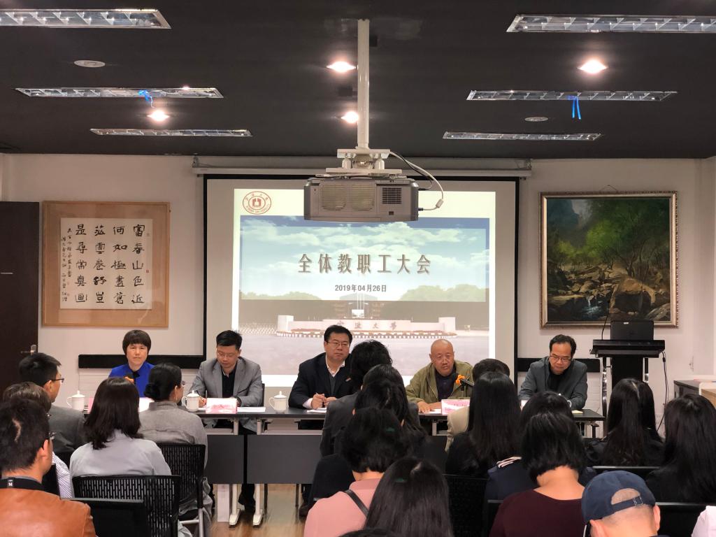 4月21日上午,我院在西区邵逸夫图书馆三楼会议室召开全院教职工大会暨建筑系教职工座谈会,调教