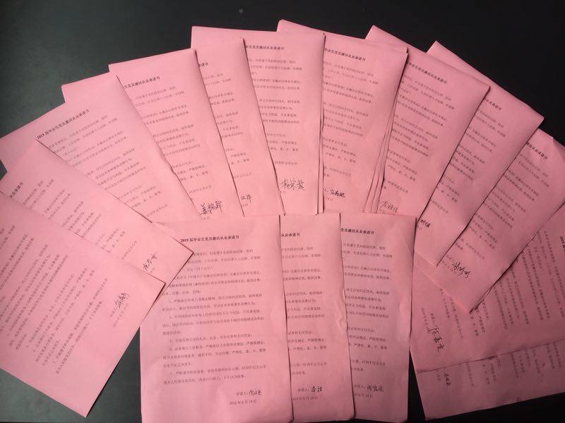 6月18日下午,学院召开全体毕业生党员大会,毕业生党员重温入党誓词,再次学习了党章,并签订了廉洁从业承诺书。