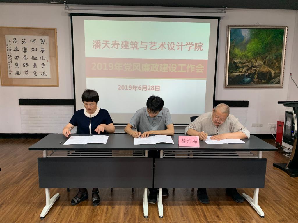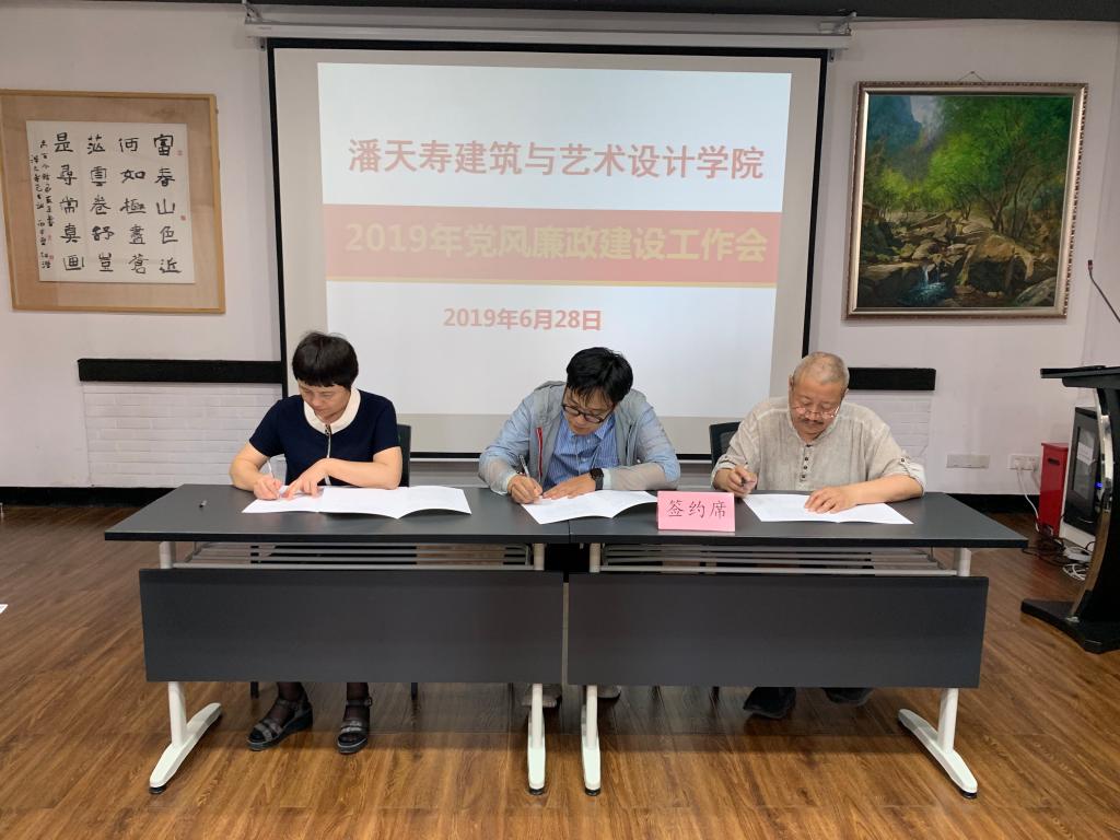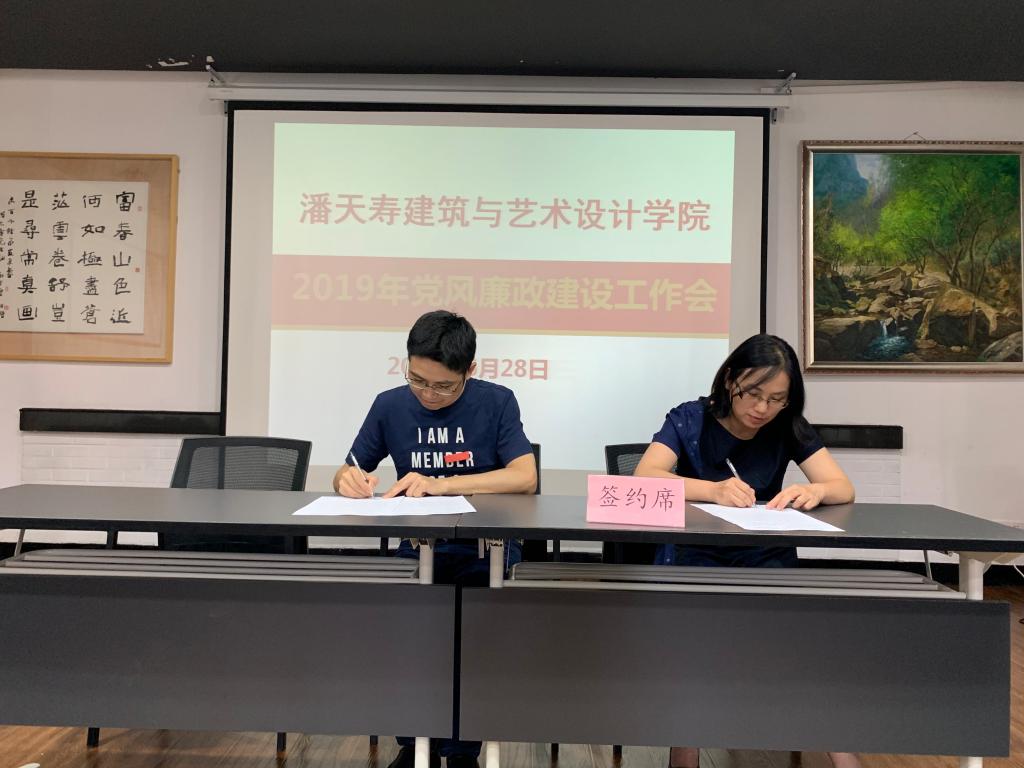 会议首先回顾了学院本学期党风廉政建设的基本情况,剖析了各系部办工作中仍存在的廉政风险点及相应防控措施,根据第七轮领导干部聘任和新一届党委委员情况,对党风廉政织领导与责任分工做了调整。接着,会议通报了宁波市纪委近期发布的北仑、宁海违反中央八项规定典型案例。随后,学院领导干部分别签署党风廉政承诺书,学院党委书记徐一萍、特聘院长徐仲偶还与各系部办主任签订2019年党风廉政建设责任书。