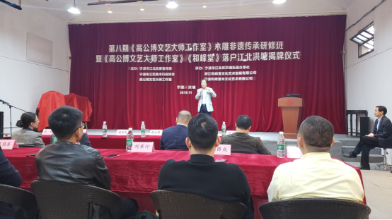 家居设计系老师及16、17、18级家居班三十余名学生参加了第八期《高公博文艺大师工作室》木雕非遗文化研修班的揭牌仪式,为同学们开启了传统工艺学习之旅。工作室坐落于江北区洪塘,同学们在此进行了为期五天的木雕、竹雕和根雕课程学习。学习过程中同学们积极向工作室的老师们请教,认真完成雕刻作品。课程结束后,市委宣传部领导及高公博大师为同学们颁发了结业证书,并对学生作品逐一进行点评。高大师对我院学生作品给予了高度赞许,并希望学生可以经常到工作室进行学习交流,互通艺术。通过此次学习,学生们不仅获取了知识,锻炼了动手能力,同时也开拓了眼界,提升了艺术修养。