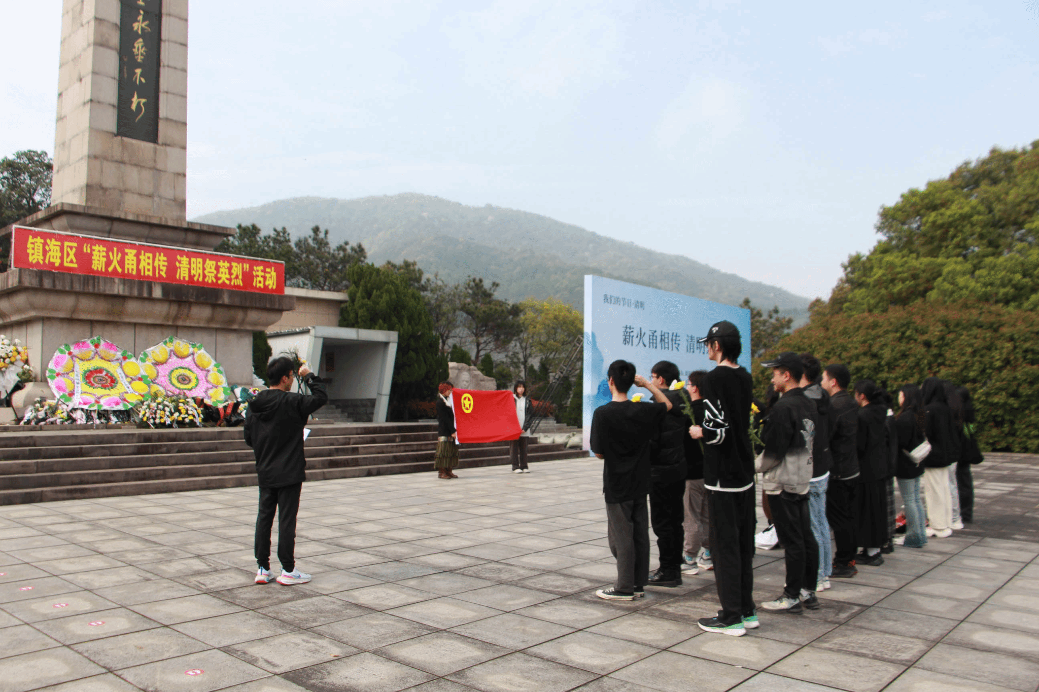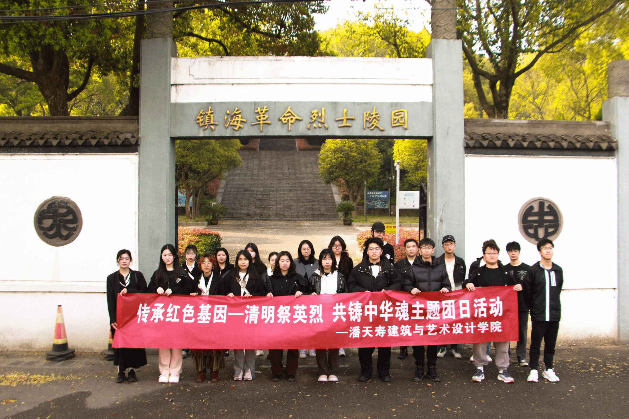 下午14时,2021级工业设计专业2班团支部二十余位同学怀着崇高的敬意,走进了宁波市镇海革命烈士陵园。走进陵园,一股庄重、凛然之气扑面而来,把烈士陵园洗濯得更加整洁。园内的青松翠柏,为庄严的陵园增添了一份肃穆。
