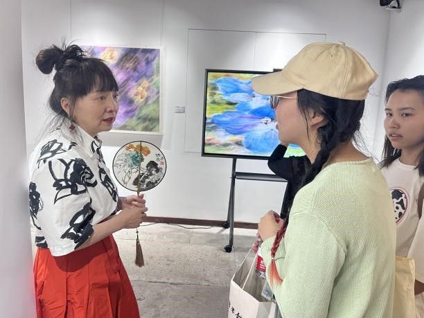 中国文联副主席、西泠印社副社长兼秘书长陈振濂先生对此次画展给予支持。鼓励美术系师生们创作出符合新时代的作品。画家张敏女士在画展中为同学们传道、解惑。同学们表示,此次展览收获颇丰,一定会在今后的书画创作中奋发努力,为母校争光。