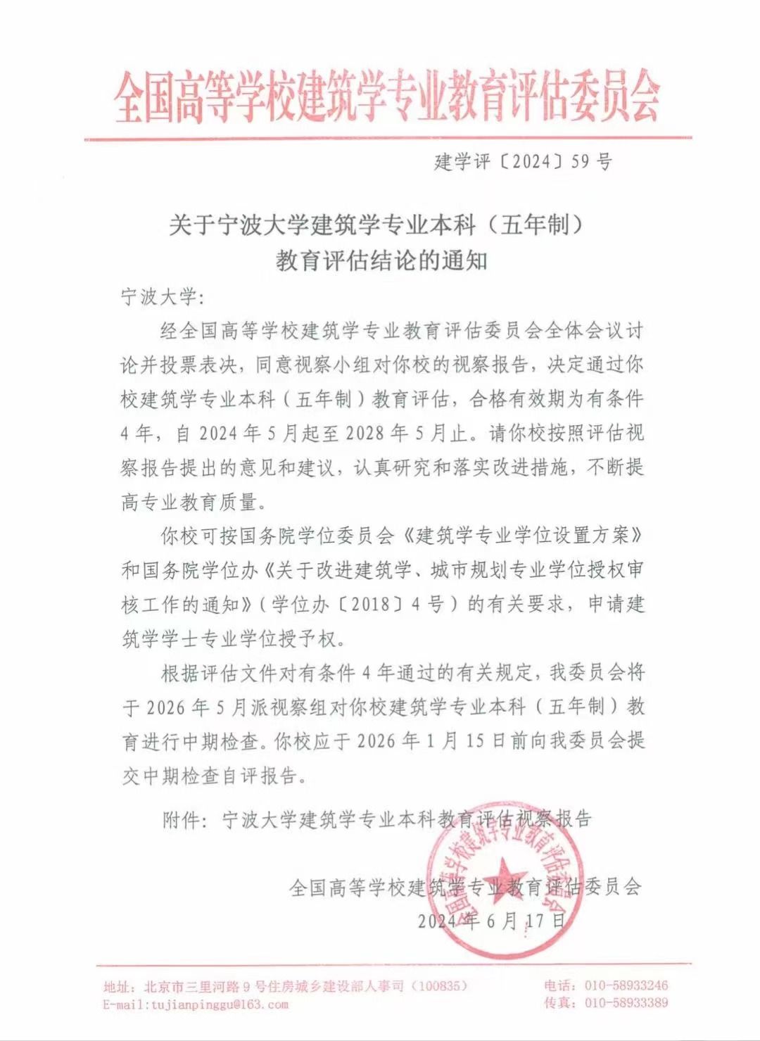 经全国高等学校建筑学专业教育评估委员会全体会议讨论并投票表决,宁大调教