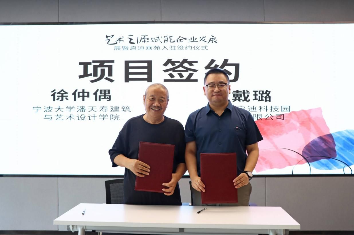 与启迪科技园(宁波)共建启迪画苑并进行项目签约。活动现场,学院执行院长陆海介绍了学院的基本情况、机构设置、发展历程等。学院特聘院长徐仲偶与宁波启迪总经理戴璐进行共建签约。宁波市清华大学校友会会长、原调教
