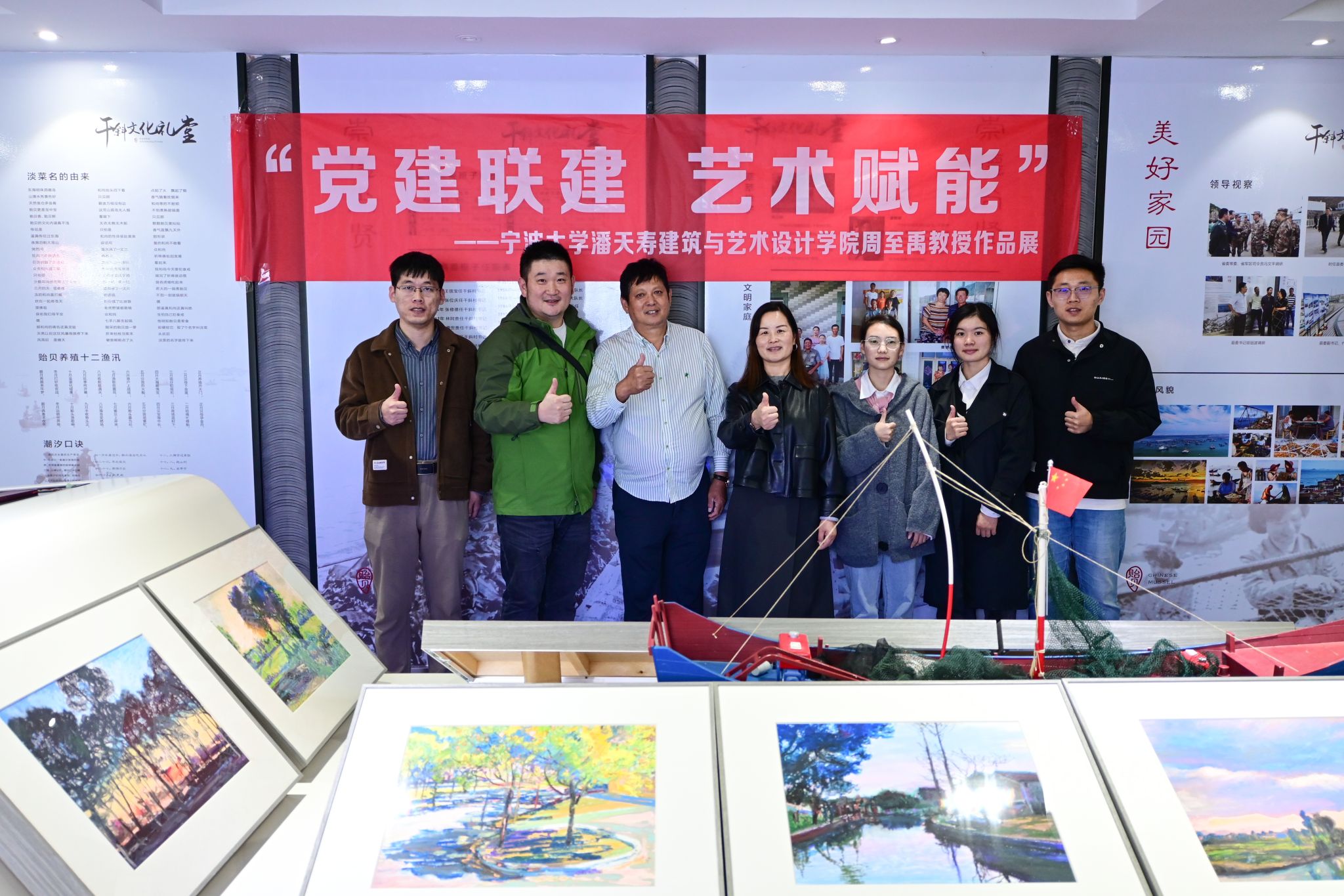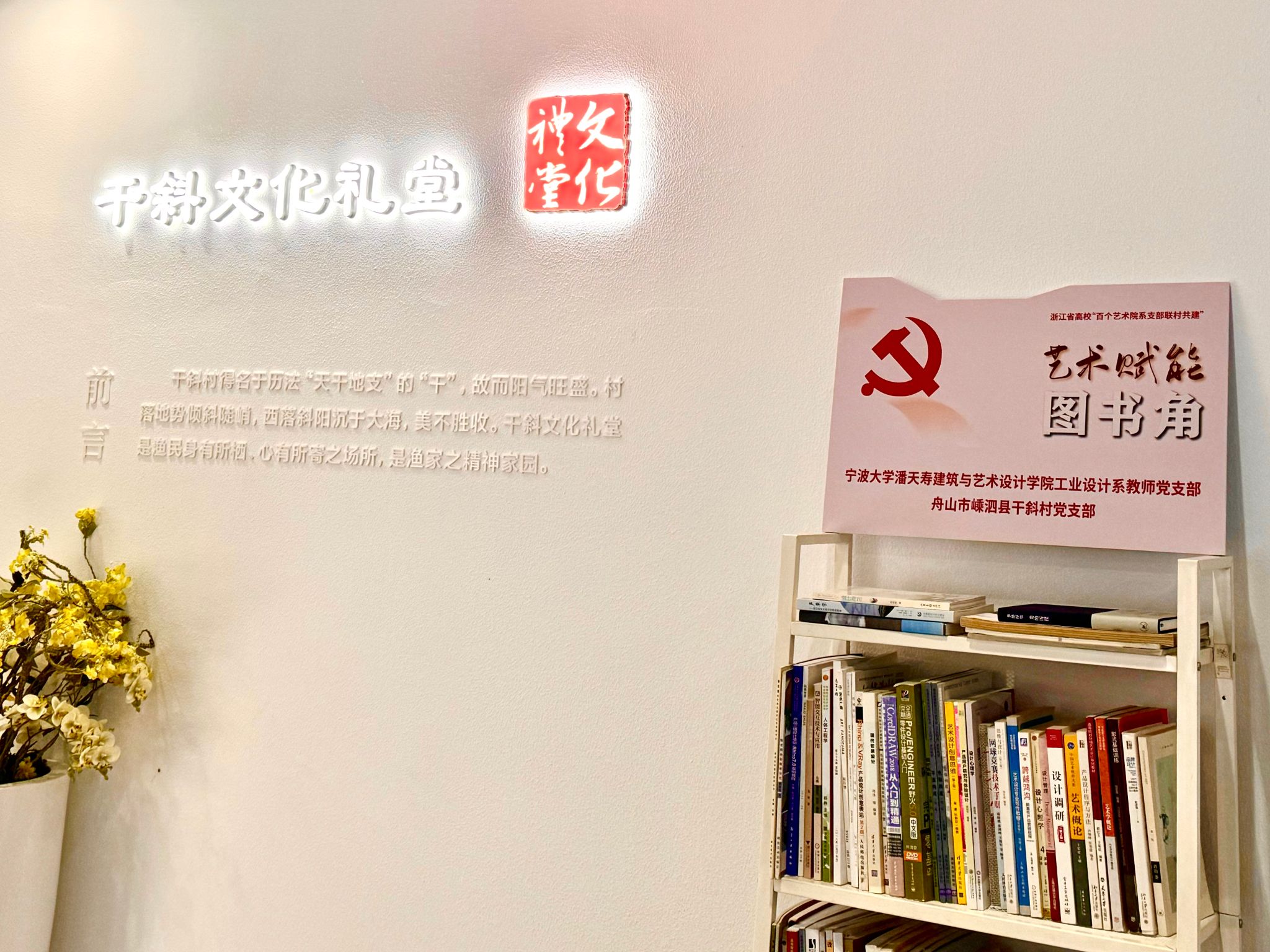 周至禹教授作品展”,在文化礼堂展台展出周教授作品近二十件。图书角捐助和绘画作品展让村民足不远行,在家门口的就能享受到一场艺术文化盛宴,收到了村支书及村民的广泛好评。