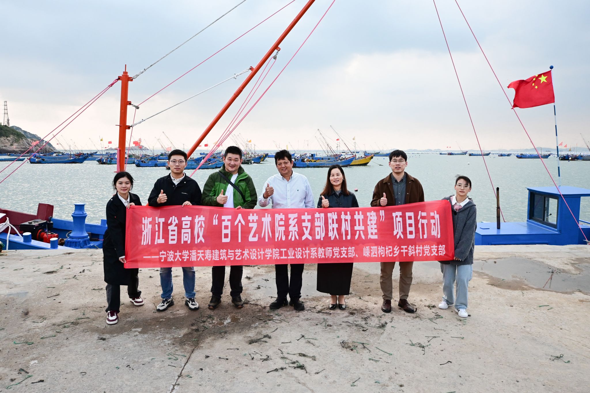 在干斜村,金友定书记带领韩书记一行参观了海上养殖未来牧场信息监控中心、万亩贻贝养殖“海上牧场”和村文化礼堂。在村文化礼堂,举行了简短的捐赠仪式,学院工业设计系教师党支部捐赠100余册艺术设计类书籍、画册,设立了“浙江省百个艺术院系支部联村共建”“艺术赋能”图书角。还举办了“党建联建 艺术赋能——调教