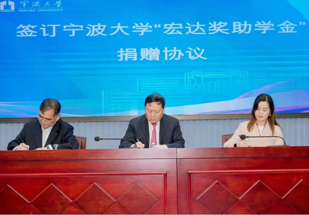 多名学子荣获“宏达奖学金”,并参与奖学金捐赠仪式。新一轮“宏达奖助学金”捐赠周期三年,将在学院捐资30万元。学院党委书记韩雯琛、宁波宏达货柜储运有限公司董事长陆汉幸、宁波市北仑区慈善总会会长张如平等共同完成捐赠仪式签约。