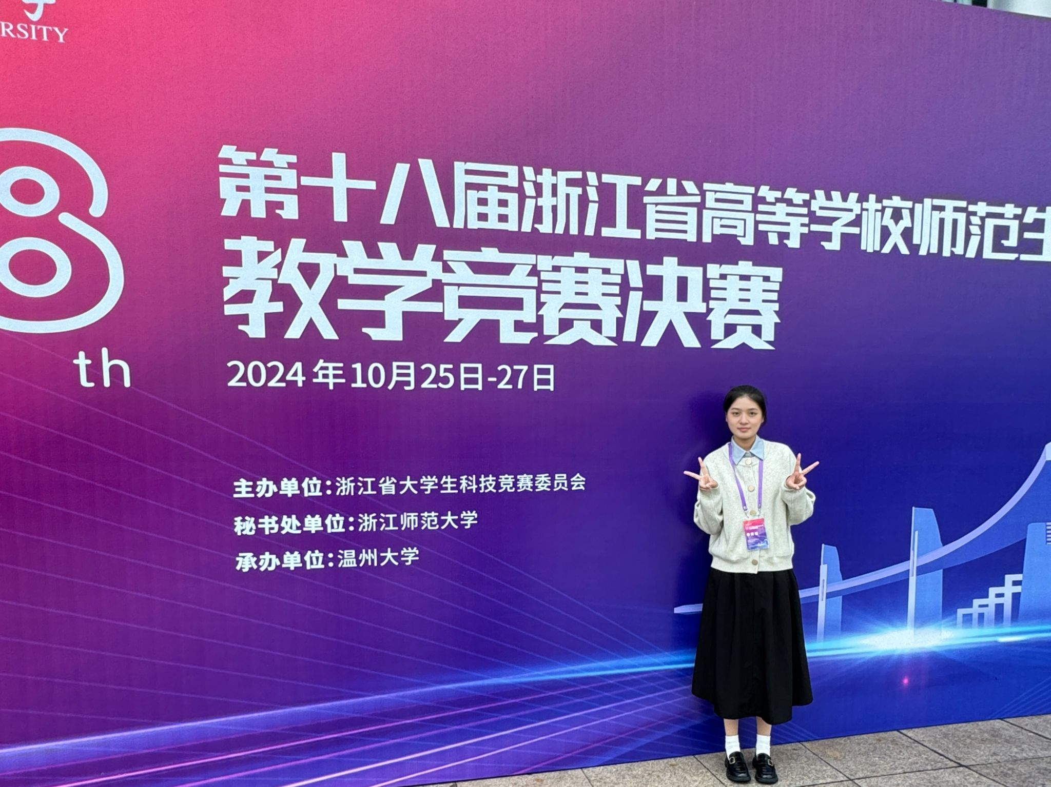 美术系潘杨彤同学在第十八届浙江省高等学校师范生教学竞赛中凭借出色表现荣获一等奖。