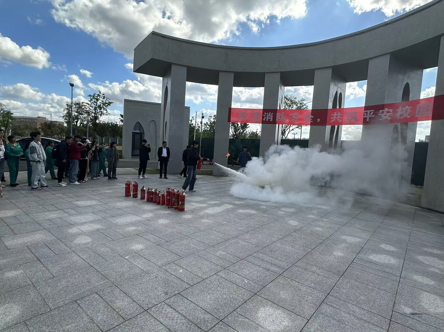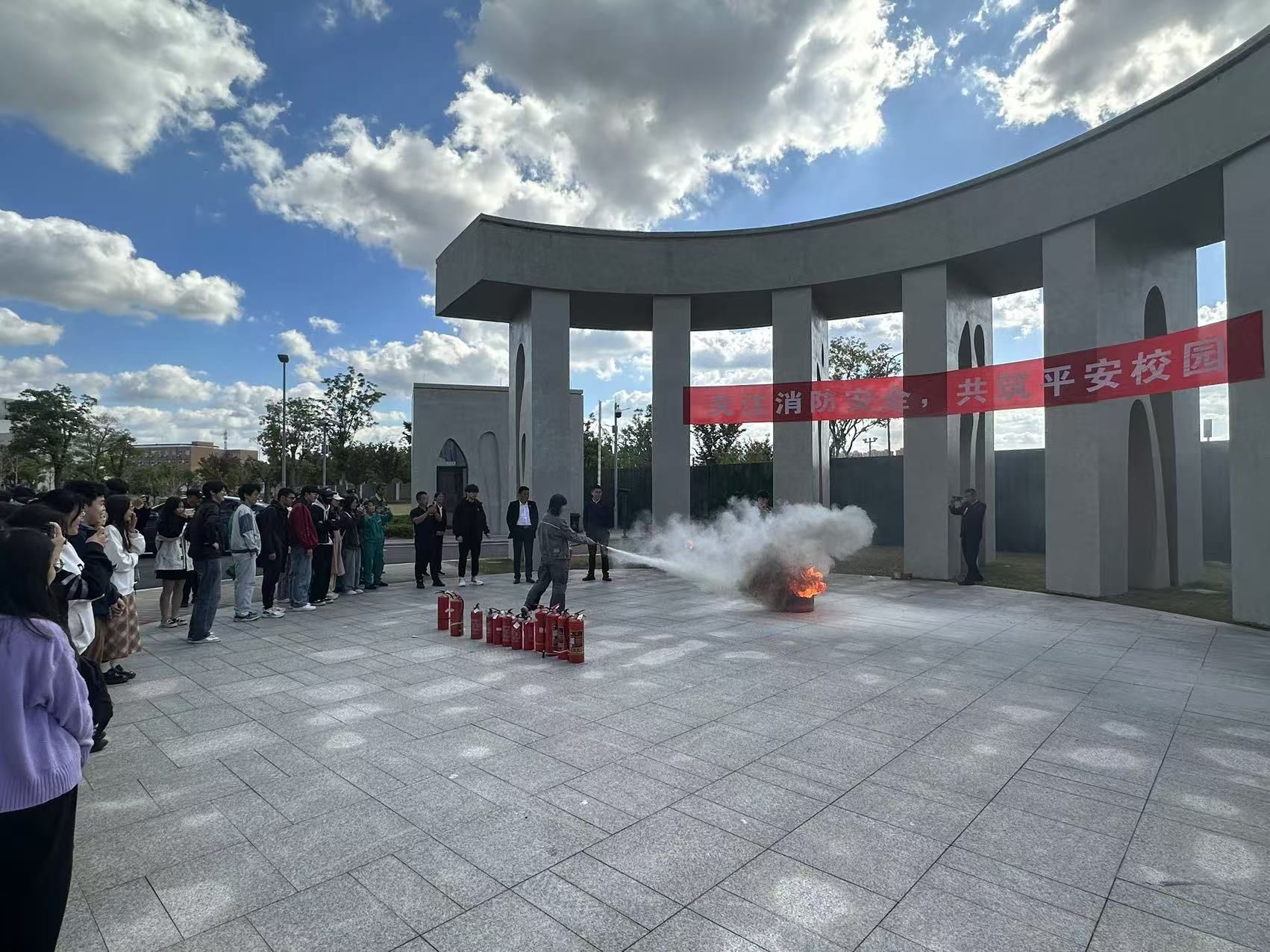 举行消防演习活动。学院相关负责人及部分师生参加活动。