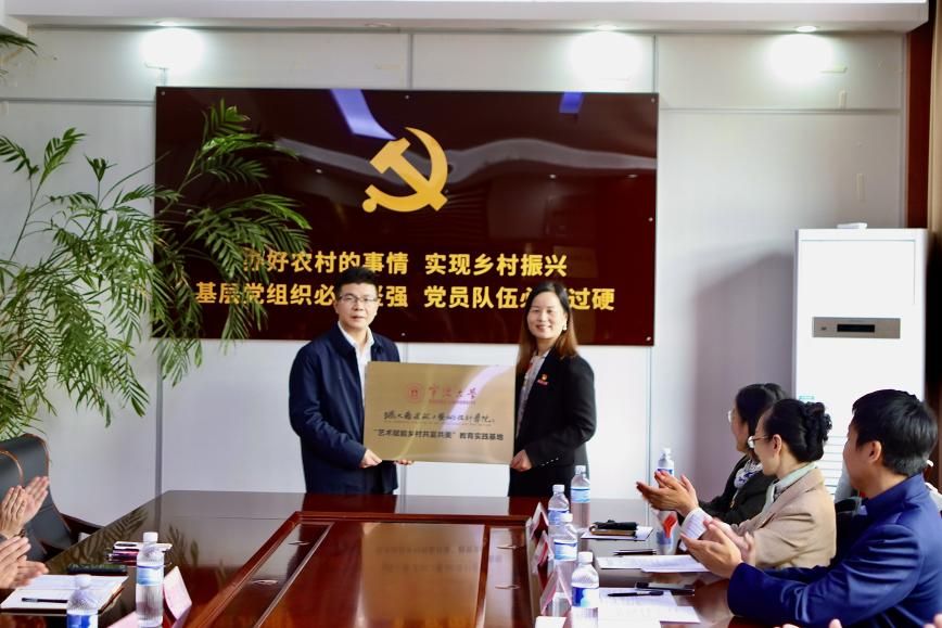 会上,还举行了授牌仪式,学院党委韩雯琛书记与黄科威书记共同揭开了潘艺学院“艺术赋能乡村共富共美”实践教育基地的铜牌,旨为横坎头村乡村经济与文化发展提供源源不断的艺术和人才人力资源支持。