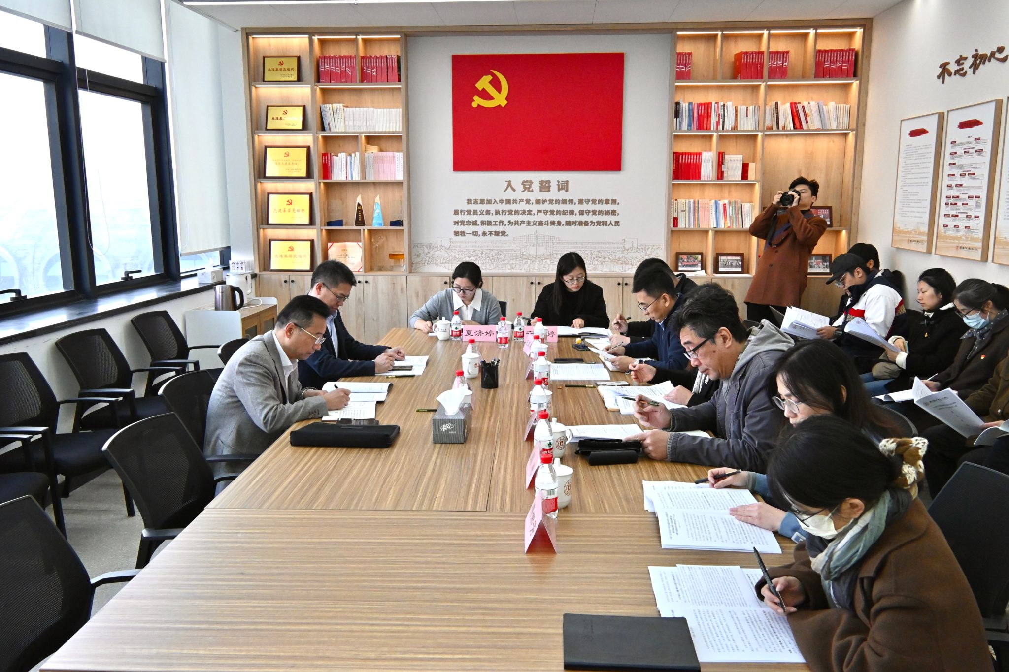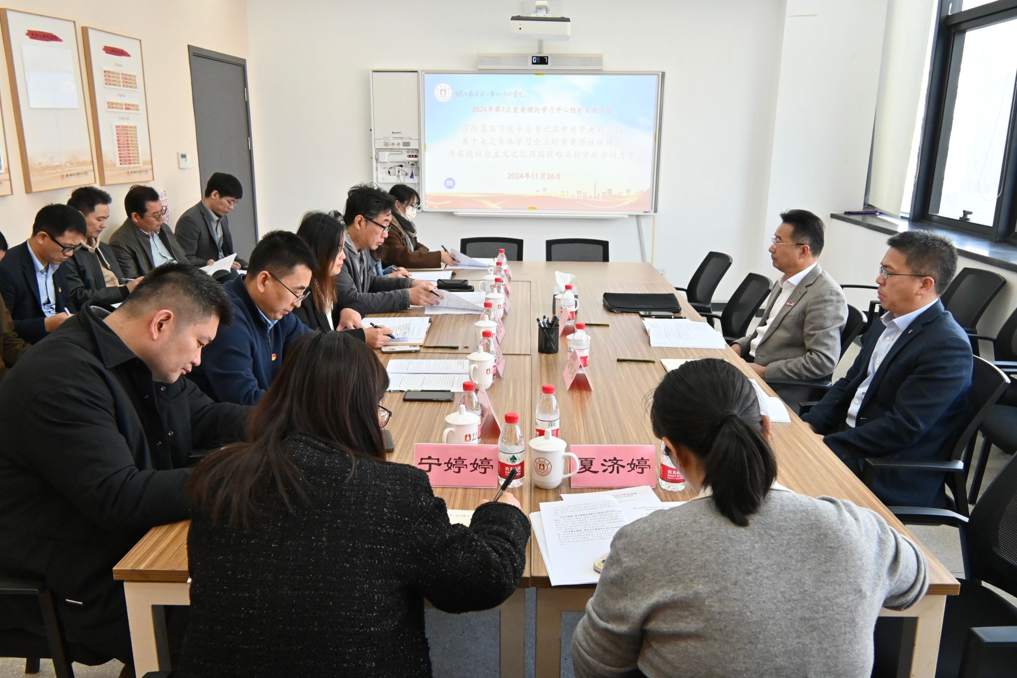 党委在学院“党员之家”召开理论学习中心组学习扩大会,学习会的主题是:贯彻落实习近平总书记在中共中央政治局第十七次集体学习会上的重要讲话精神,为实现社会主义文化强国战略目标贡献学科力量。会议由学院党委书记韩雯琛主持,理论学习中心组全体成员、执行院长陆海、教师党支部书记、各系主任、学工办主任等参加会议。校党委书记朱达,校党委委员、宣传部部长余怡春等一行到场巡听旁听指导。