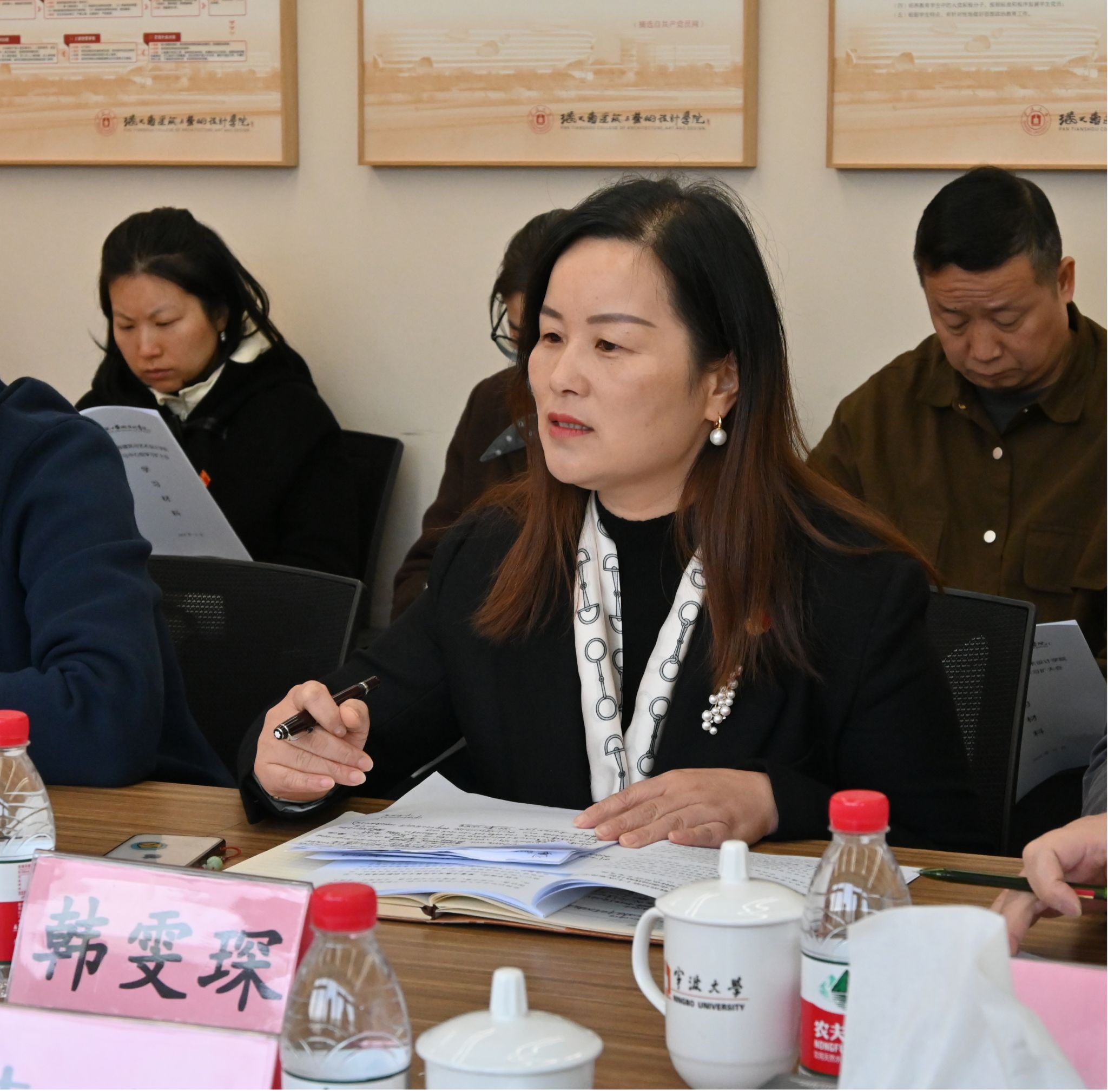 会上,学院党委书记韩雯琛首先领学习近平总书记在二十届中共中央政治局第十七次集体学习会上的重要讲话精神,并结合主题从“学深悟透,深刻学习领会文化强国的重要内涵;凝心聚力,珍惜建设文化强国战略目标带来的发展机遇;勇担重任,肩负起文化强国战略目标下潘艺的使命与担当”等几方面谈学习体会。接着,学院执行院长陆海、党委副书记刘秉印、副院长王卓然围绕主题分别从“发挥学科交叉优势,强化数字化和智能化赋能,加强中华优秀传统文化传承和保护;以文化人、以文育人提升高校思想政治教育的针对性和实效性;坚持文化传承与创新,做好研究生教育”作重点发言。随后,中心组其他成员结合所学内容和工作实际逐一交流发言。