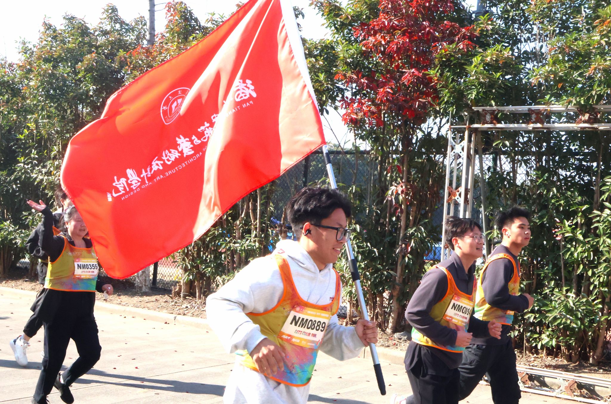 比赛全程共五公里,院旗在学子中传递着,同学们在清晨的柔光中,跟着指示,最后回到了东区操场进行领奖、拍照留念。