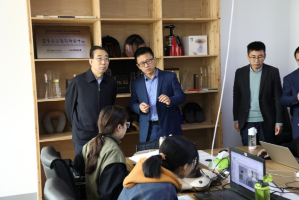 3月25日上午, 中国公共外交协会会长吴海龙, 太和智库研究员张雨一行,宁波市经信局,艺科心研究院及清华大学、浙江大学、哈尔滨工业大学等领导专家陪同莅临学院参观考察,特聘院长徐仲偶,党委书记徐一萍等领导及工业设计系老师接待了考察组一行。