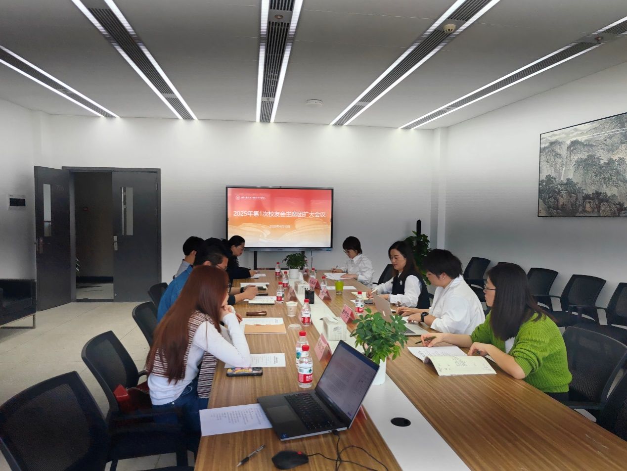 2025 年第 1 次校友会主席团扩大会议在学院 706 会议室召开。本次会议聚焦校友会年度工作谋划,旨在凝聚各方力量,推动校友会工作迈向新台阶,为学院与校友的共同发展搭建更坚实的桥梁。会议由宁波诺维亚家居有限公司总经理、学院校友会会长郑贵安主持。学院党委书记韩雯琛、副院长王卓然、洪蓉蓉老师、党委委员兼党政办主任宁婷婷、辅导员吴越,以及校友会主席团成员邹瑜平、万志成、赵金龙、岑佳妮、汪校吉等齐聚一堂,共同参与此次会议。