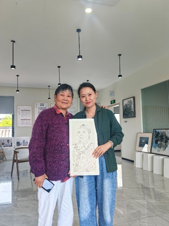 随后,师生分组为村民进行肖像创作,优先服务老党员和高龄老人。上午场创作持续至11时30分,学生以专业技法捕捉人物神韵,一幅幅生动作品跃然纸上。午间,鞍山村为师生准备了简餐,双方在轻松氛围中交流村史民情,深化了彼此了解。下午的创作延续至16时,师生共完成30余幅肖像作品,部分村民现场收到画作后感慨:“没想到能在家门口得到这么专业的画像,很感动!”