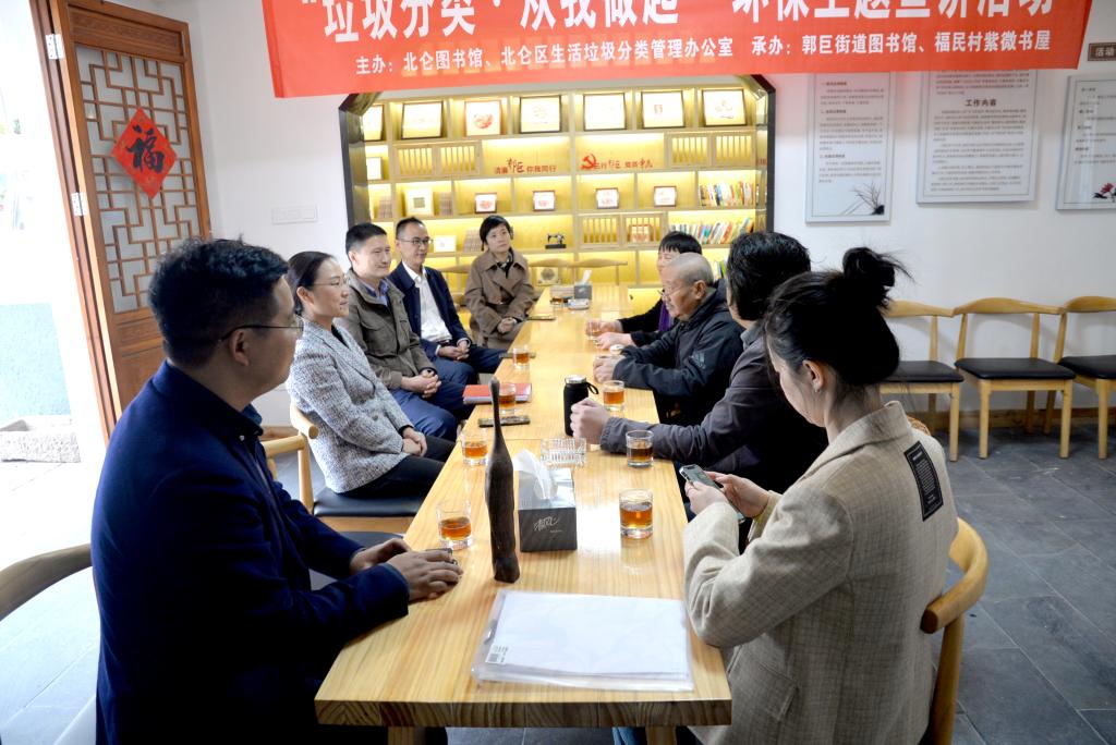 徐仲偶一行在北仑郭巨街道党工委书记沈冬梅、郭巨街道办事处主任乐伟等的陪同下赴党群服务中心参观了郭巨街道非遗陈列馆,考察了紫微岙美丽乡村建设,并在三多屋交流共建事宜。