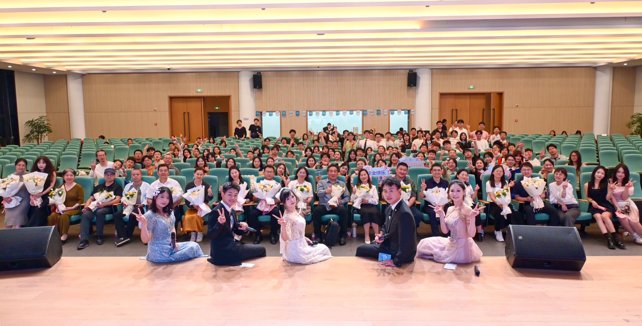 毕业歌会精彩纷呈,师生共聚一堂。活力四射的同学舞蹈《drama》引爆全场,动感节奏尽显青春不羁;独唱《阿楚姑娘》如清泉流淌,温柔抚慰着离别的愁绪;舞蹈《初见》以曼妙舞姿重现青涩相遇的美好瞬间,勾起无限回忆;弹唱《蝴蝶》旋律悠扬,才华与情感在琴弦间自然流淌;同学合唱《我们的明天》的歌声响彻大厅;穿插的抽奖环节惊喜连连;白松旭老师的《我爱你中国》将气氛推向高潮。