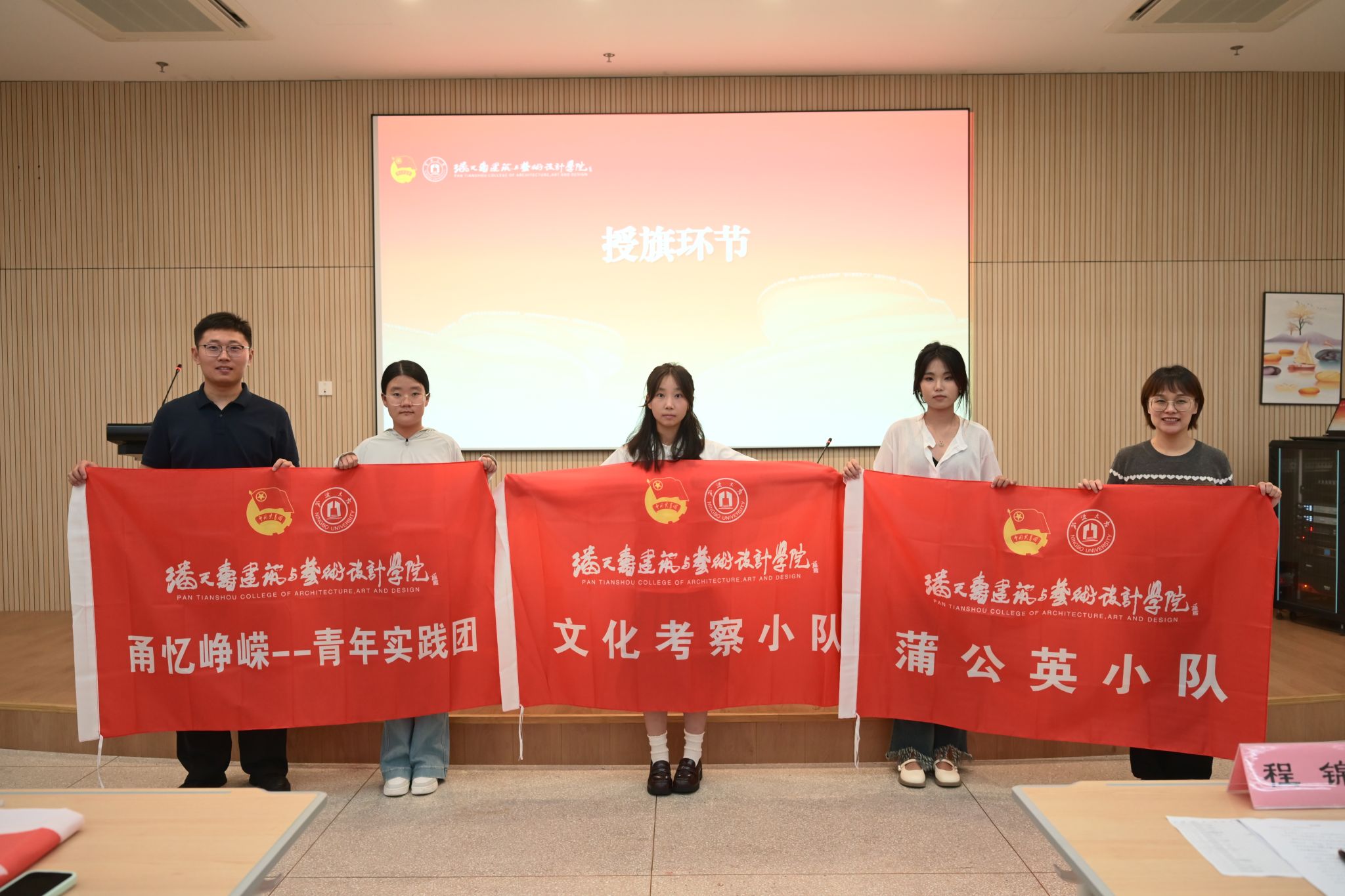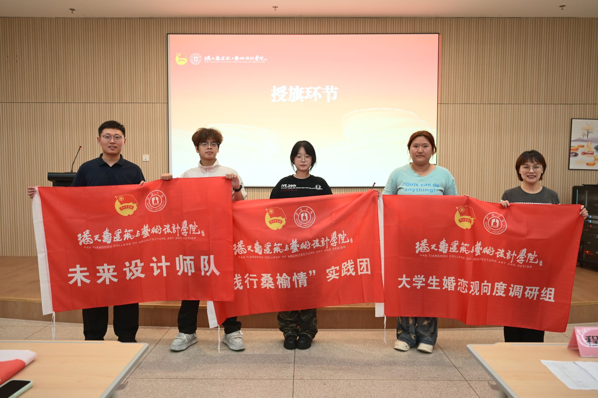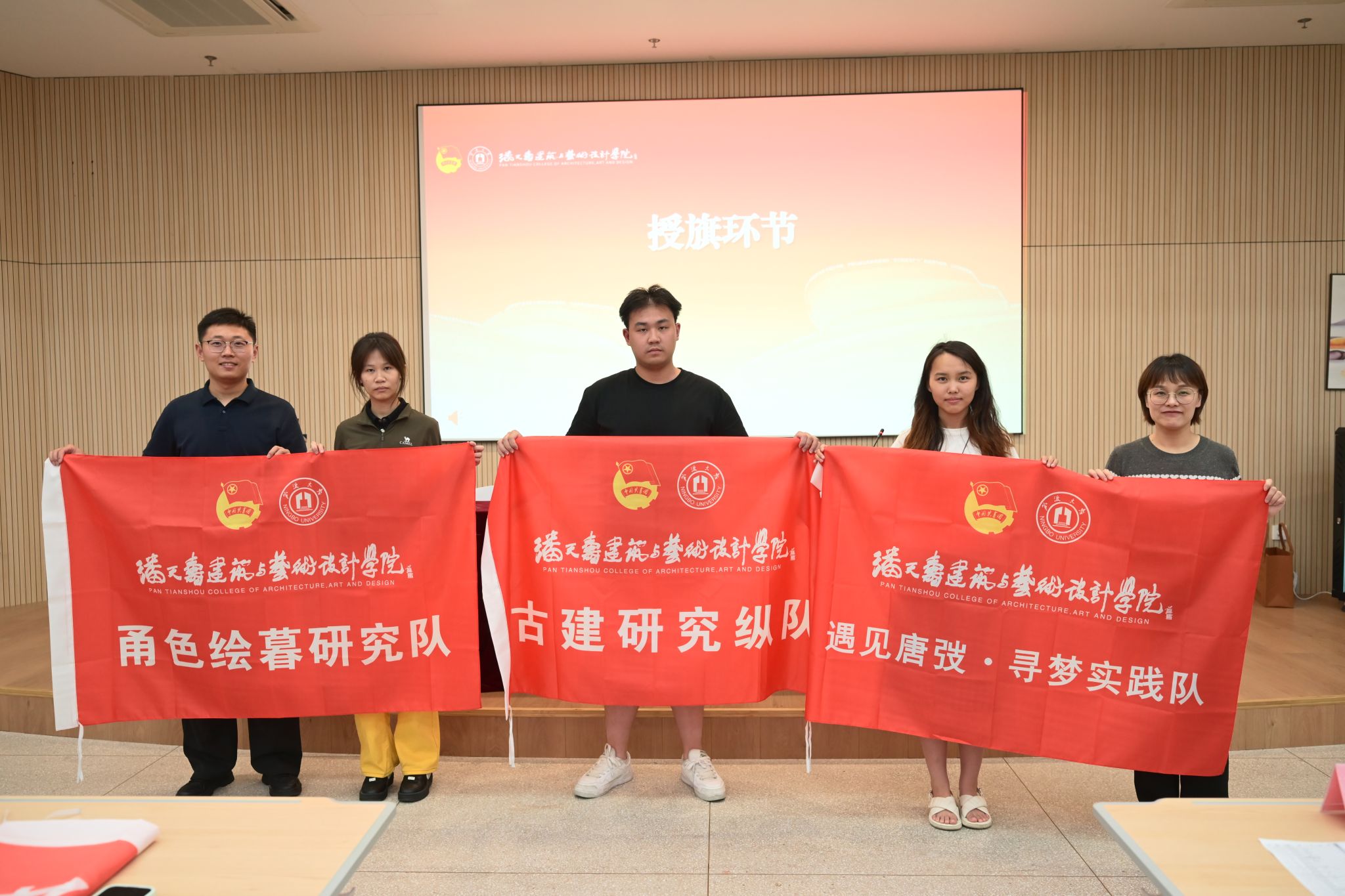 随后,与会老师向暑期社会实践各支队伍授旗,鲜红的旗帜承载着学院的期许、安全的嘱托与青年的理想。