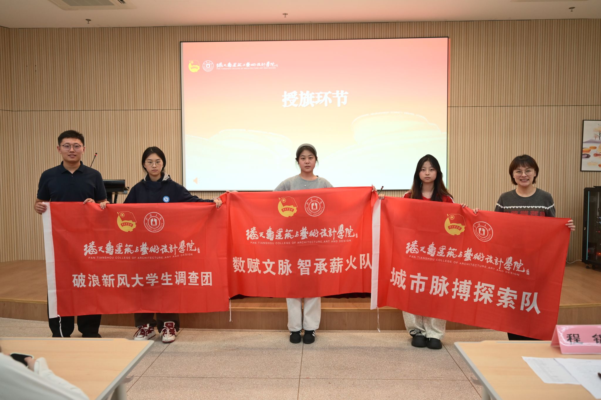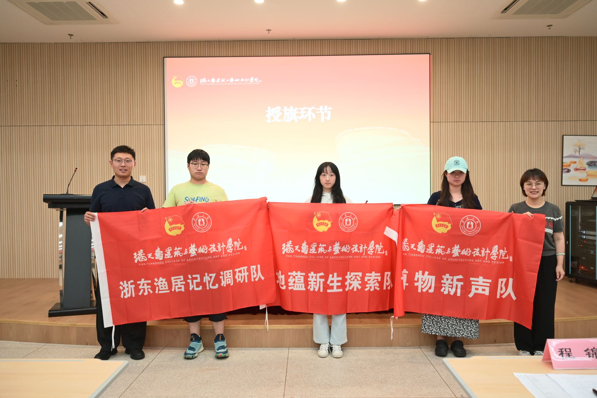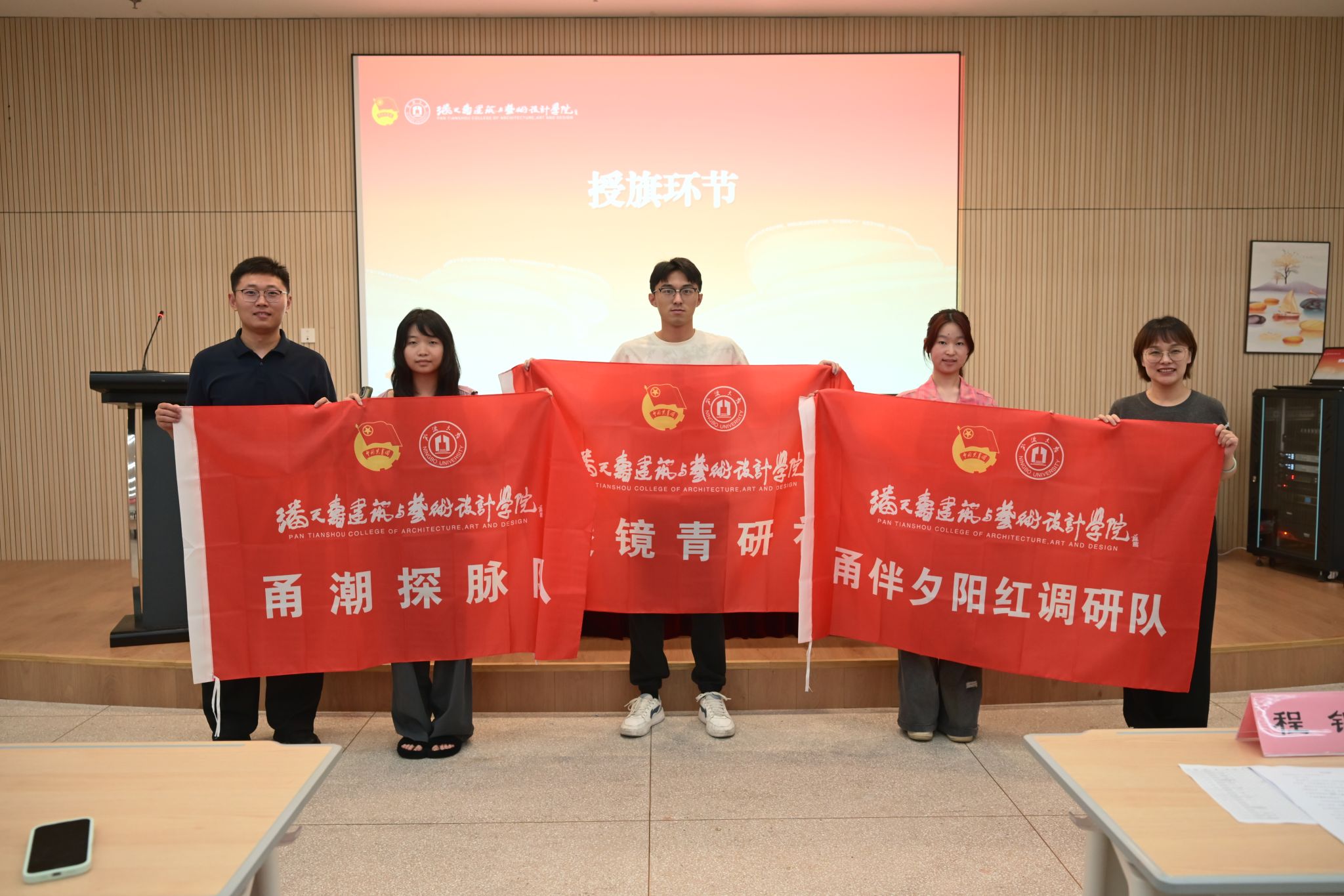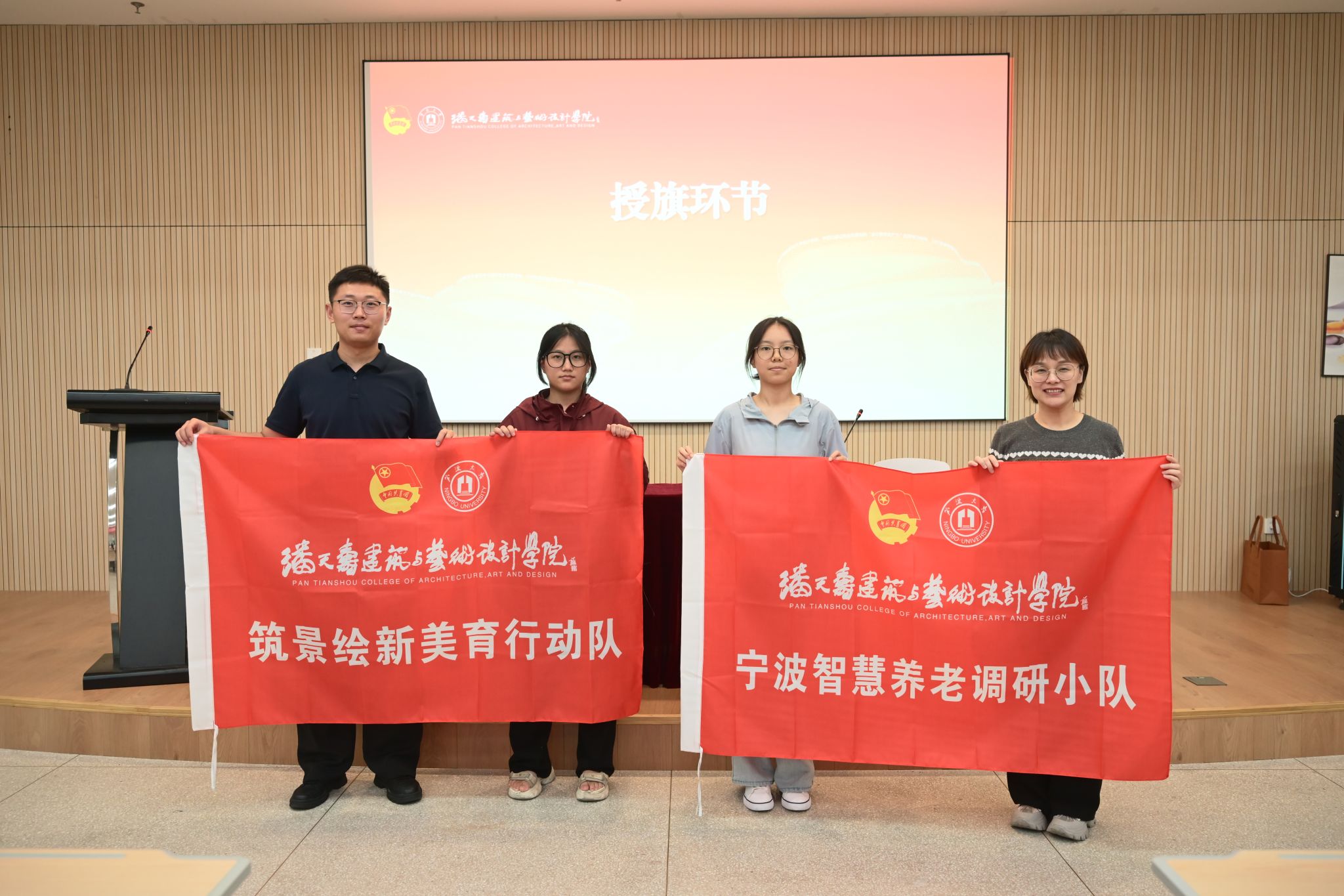 随后,与会老师向暑期社会实践各支队伍授旗,鲜红的旗帜承载着学院的期许、安全的嘱托与青年的理想。