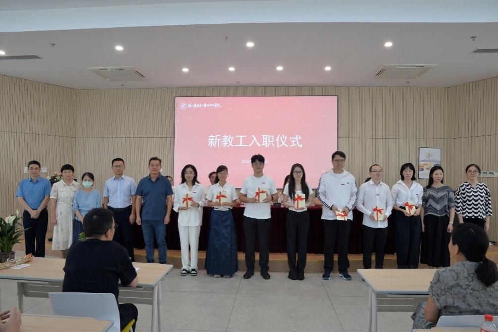 会议第二阶段,举行了新教工入职仪式。教授代表和各系(办)主任为新教工佩戴调教