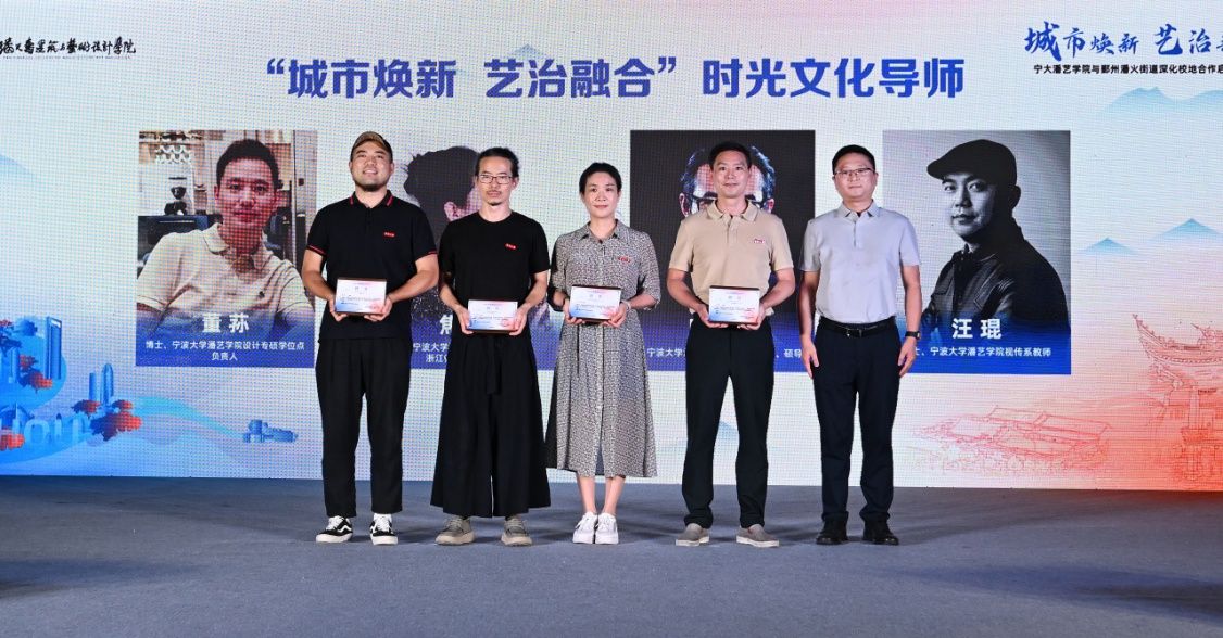 仪式上,潘艺学院党委负责人与潘火街道党工委负责人签署深化校地协作推进艺治共融合作协议,共同开启校地协同发展新篇章。鄞州区委常委、宣传部部长潘玲玲出席仪式见证共建协议签署。潘艺学院四位教师受聘为社区时光文化导师,视传与数媒系教师党支部书记、省级“双带头人”教师党支部书记董荪介绍了课程体系安排,他们将带领学生团队扎根社区,用专业力量激活在地文化。