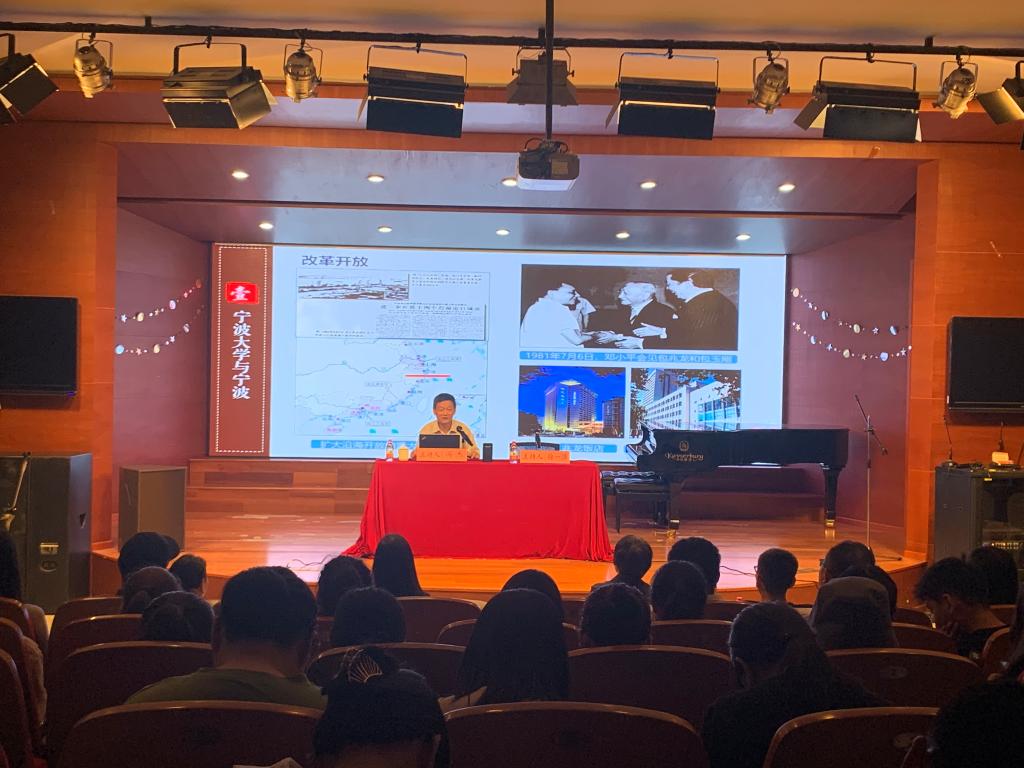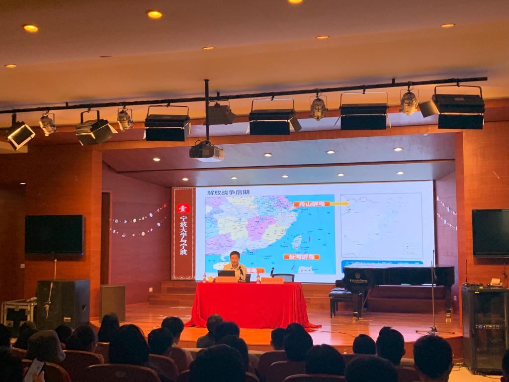 与宁波”开篇,由宁波城市建设历史出发,向师生讲述了宁大所处的这片土地的悠久历史与文化底蕴,同时着重讲解了中国共产党领导浙东(四明山)抗日根据地、解放战争、改革开放等历史背景下宁波现代化滨海大都市建设,以及调教