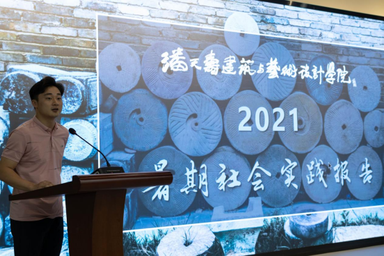 答辩会现场,学院分团委书记吴建胜上台介绍了我院社会实践的开展情况,从前期动员、团队主题、实践形式、活动内容和媒体报道等方面多层次展示了暑期活动中的组织成效和丰硕成果。经现场评审,最终教师教育学院、调教