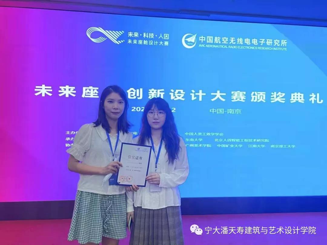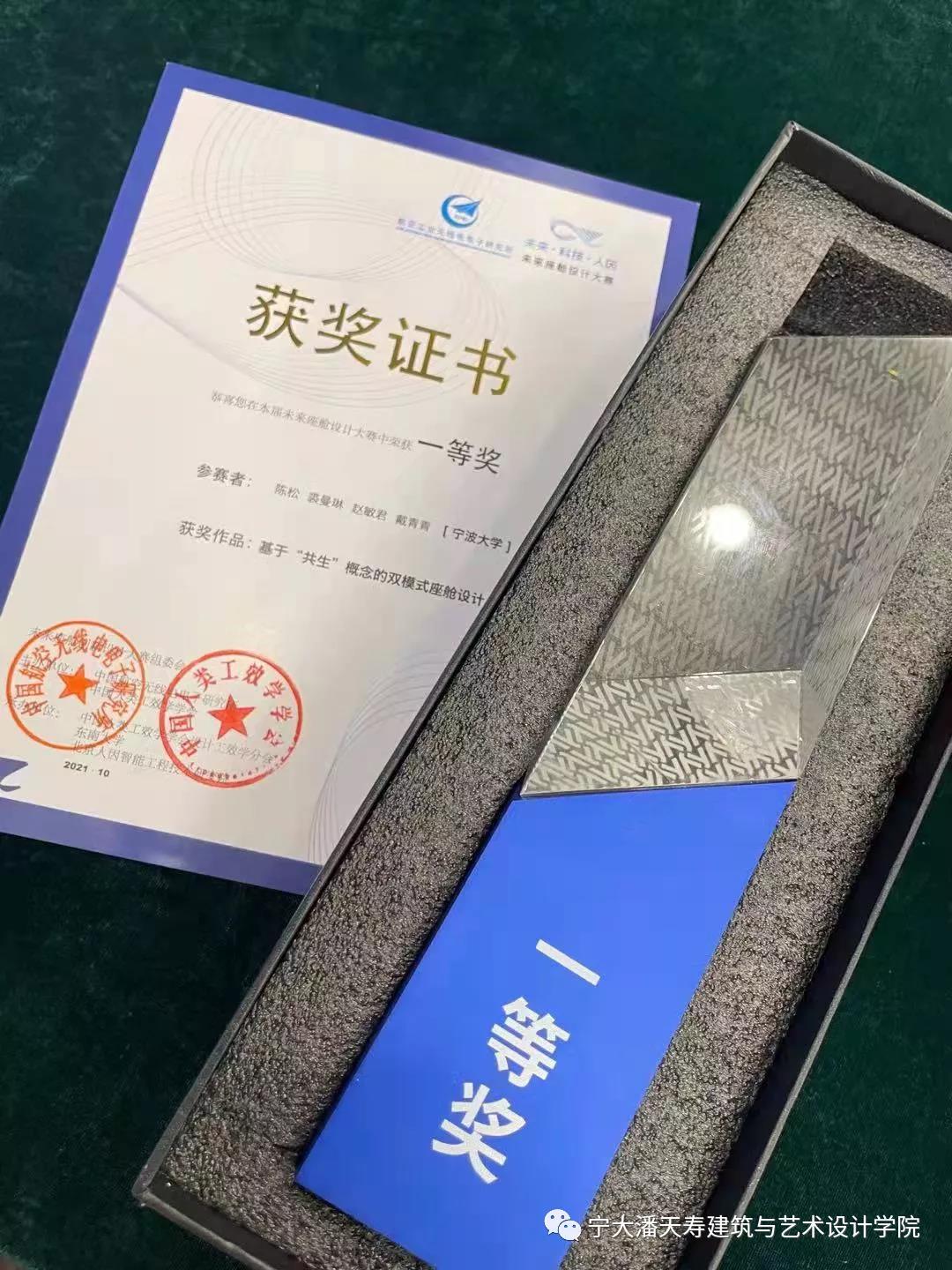 10月12日,"未来·科技·人因"未来座舱创新设计大赛颁奖典礼在南京举行,我院工业设计系副教授宫勇指导的学子陈松,裘曼琳,赵敏君,戴青青同学的作品《基于"共生"概念的双模式座舱设计》荣获一等奖。