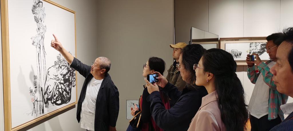 著名艺术家、美术理论家、美术教育家潘公凯先生在开幕式上分享了他对于“跨界”的独特见解及举办此次展览的初衷:“跨界是未来的潮流和发展方向,全世界的高科技发展都是跨界结合的结果,文化也在走向跨界。但要尤为注意的是,跟跨界相对的是‘守界’,跨界时,更要守住这个界。举办此次展览的初衷是想通过展览进一步讨论学术问题,讨论我们共同关注的美术教育相关问题。此次展览展出的都是我近期创作的新作,我的追求与探索是希望自己在笔墨研究、中国写意画研究方面,每次都能有所精进,同时能有一种面向未来的新探索。”