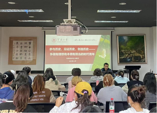 刘秉印副书记开始党课第一讲《参与历史、见证历史、创造历史——争做有理想有本领有担当的时代青年》。刘书记首先援引了习近平总书记的讲话,从历史是什么、历史的重要性、怎样传承历史、怎样学习历史四个方面介绍了习近平总书记的历史观。通过展示校内外大学生积极参与抗击新冠疫情的事例,例举国内外疫情防控截然不同的局面彰显出的中国特色社会主义制度优势,刘书记指出同学们其实亲自参与并见证了历史。最后,刘书记强调青年人要立志、修德、勤学、担当、奋斗、爱国、创新,相信同学们必将创造历史。