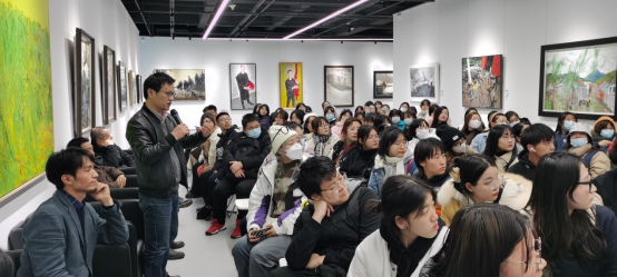 11月23日下午,学院基础部大一110名艺术设计大类的同学们,在任课老师徐时程、高鸿、胡秋波、陈晟的组织下,前往宁波纳得美术馆参观“写意精神——2021全国艺术院校油画名家邀请展”,适时把美术课堂安排在美术馆、使学生直接面对原作观摩学习的教学新形式。