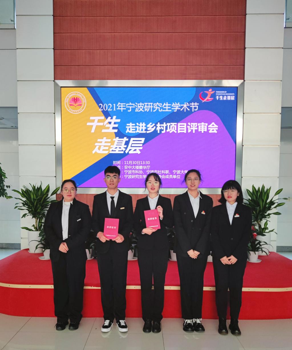 11月30日下午,2021年宁波研究生学术节“千生走基层”走进乡村项目奖项评审展示会在安中大楼碧华厅举行。校党委副书记童晓晖出席会议并颁奖,宁波市科学技术协会学会部部长宁冰、宁波市社会科学界联合会学会处三级调研员周勇、中科院宁波材料所、兵科院宁波分院、浙大宁波理工学院、浙江万里学院、宁波工程学院、大连理工大学宁波研究院、启迪科技园(宁波)的宁波研究生学术节负责人以及研工部、校团委、乡研院负责人担任评委,参评团队及研究生代表参会。