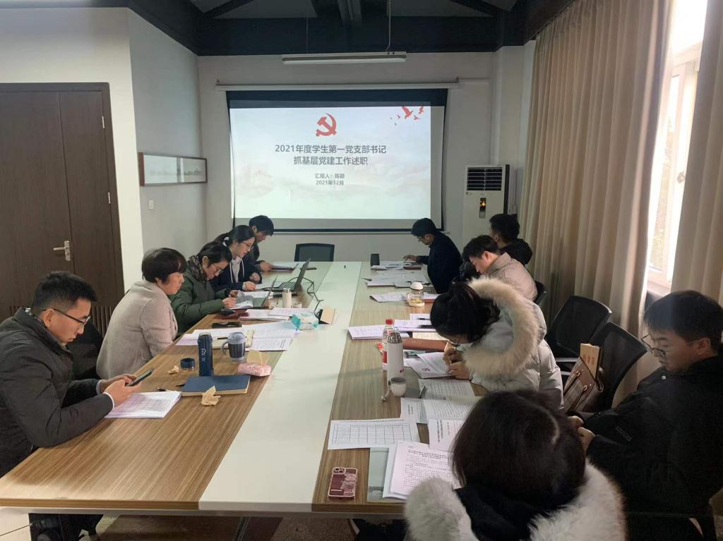 12月28日,学院在逸夫图书馆二楼会议室召开2021年基层党支部书记抓支部党建工作述职评议会,学院党委班子、师生党支部书记等参加。学院党委徐一萍书记支持会议。