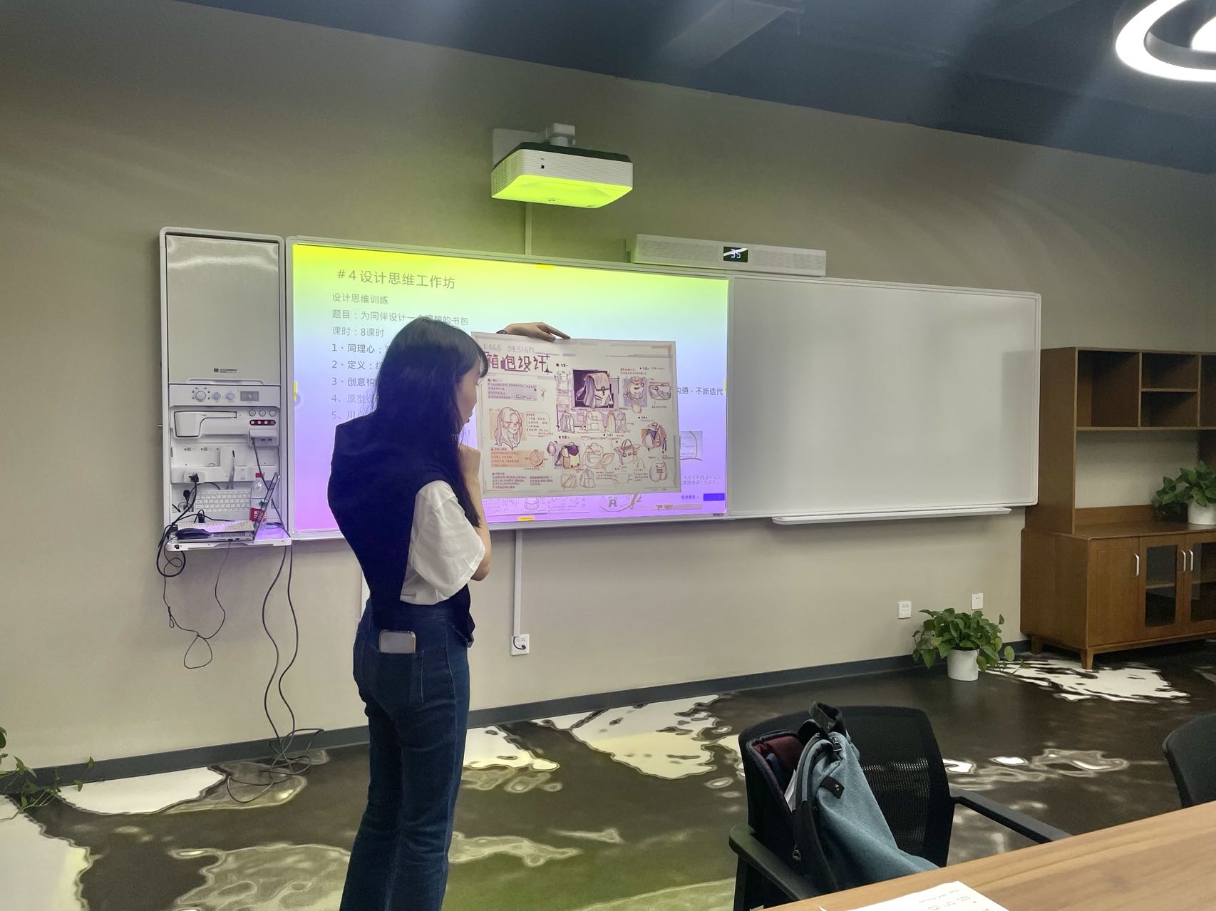 首先,韩老师提出要激发学生对设计的兴趣。她通过各行各业的经典设计案例让学生了解到设计思维是一种发现、分析、解决问题的一种思维方式,在学习、工作、生活中都能使人受益。其次,韩老师认为要走入学生内心,熟悉每一个学生,了解他们的兴趣爱好,设计“趣味议题”,进行“趣味教学”,让学生真正爱上设计。