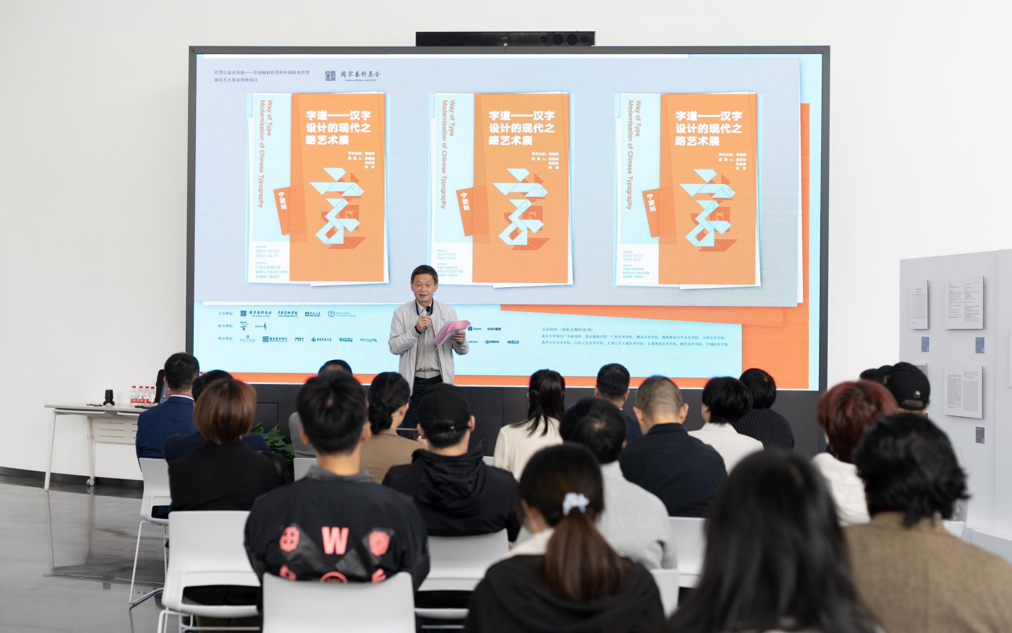 开幕式上,中央美术学院协同创新办公室主任、太庙艺术馆执行馆长岳洁琼主任,汉仪字库首席运营官马忆原女士分别作为主办与协办方代表作线上致辞。本次策展人之一、中央美术学院副教授、国际文字设计协会理事刘钊副教授通过线上的方式向在场嘉宾与师生介绍了此次展览的基本情况。调教