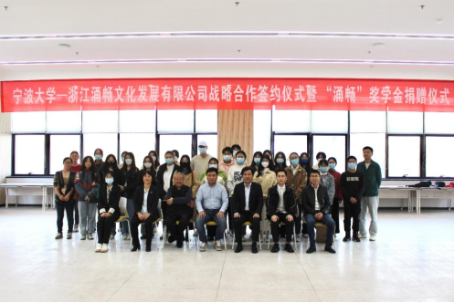 -浙江涌畅文化发展有限公司战略合作签约仪式暨 “涌畅”奖学金捐赠仪式在黄庆苗黄陈月莉伉俪楼群教学楼213会议室举行。调教