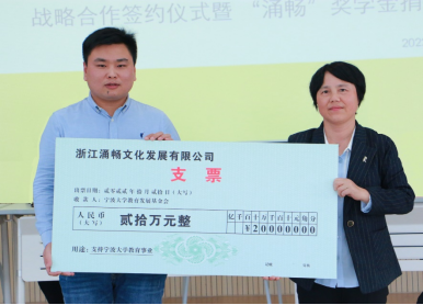 捐赠人民币20万元,设立“涌畅”奖学金,主要用于奖励美术学(师范)专业品学兼优的优秀学生。同时,调教