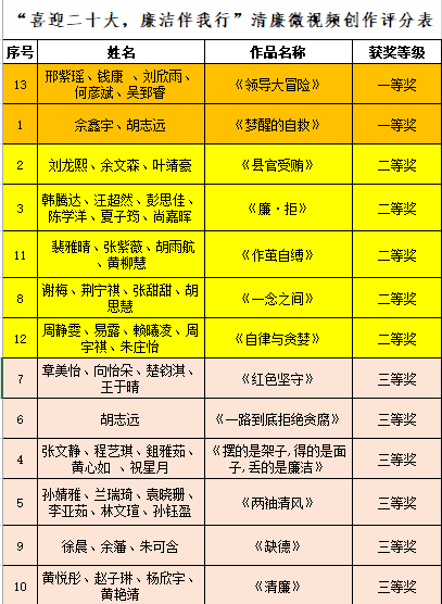 本次比赛作品内容主要围绕时政热点进行创作。同学们聚焦中华优秀传统文化的廉洁基因,立足于廉洁文化,以传递正能量,营造风清气正、向上向善的时代风尚进行创作。经专家老师评审,最终评选出一等奖2名、二等奖5名、三等奖6名。
