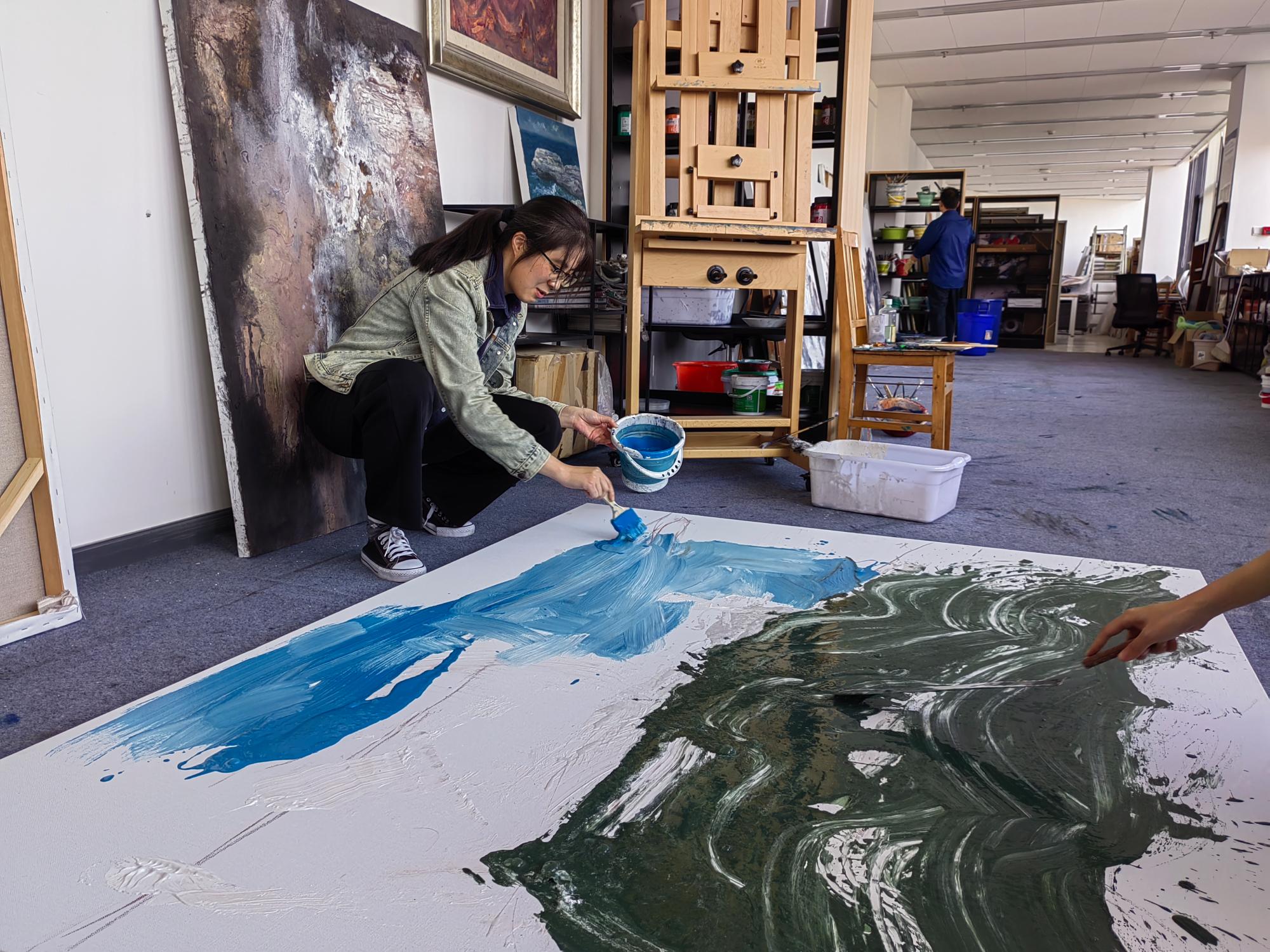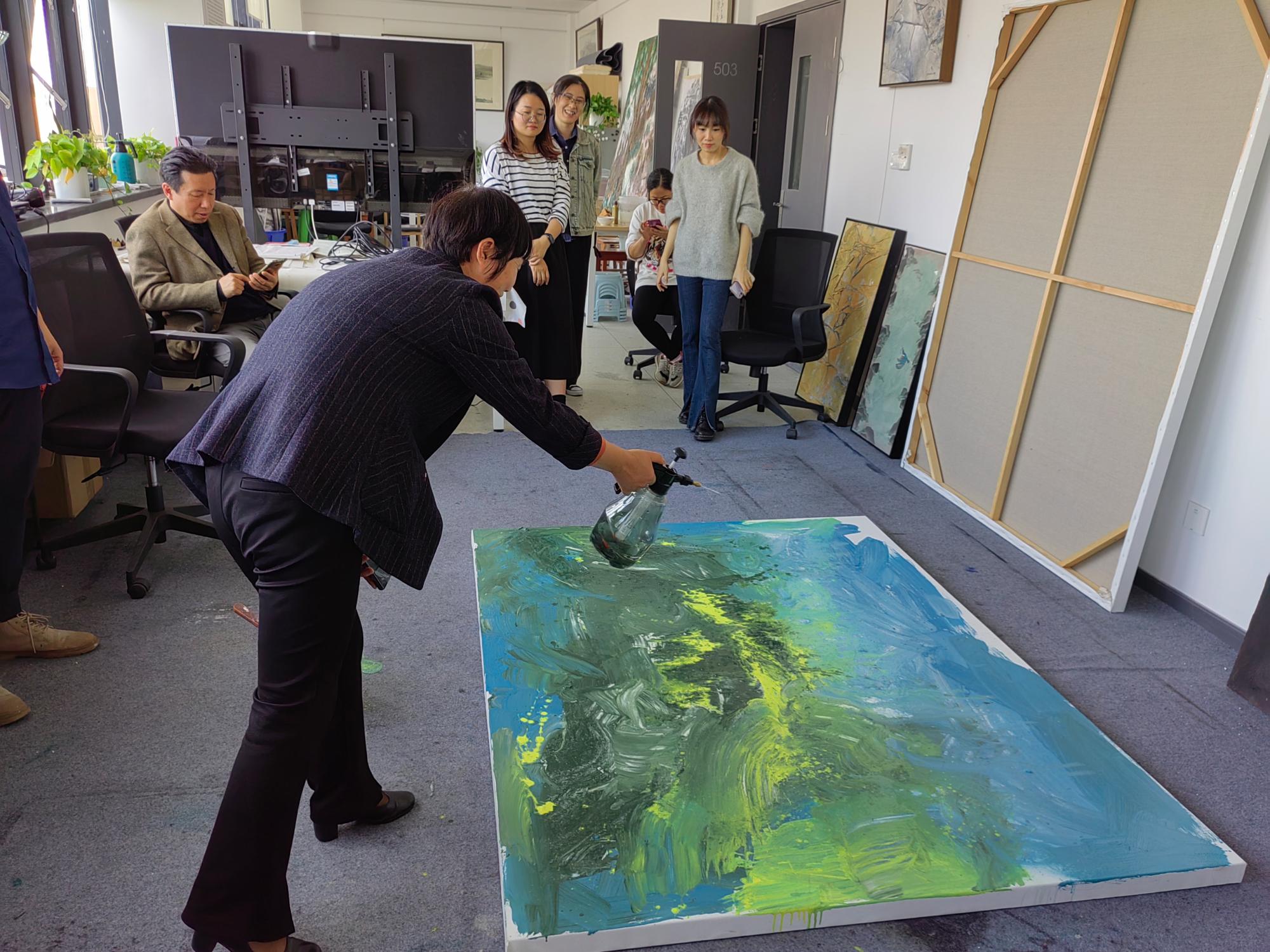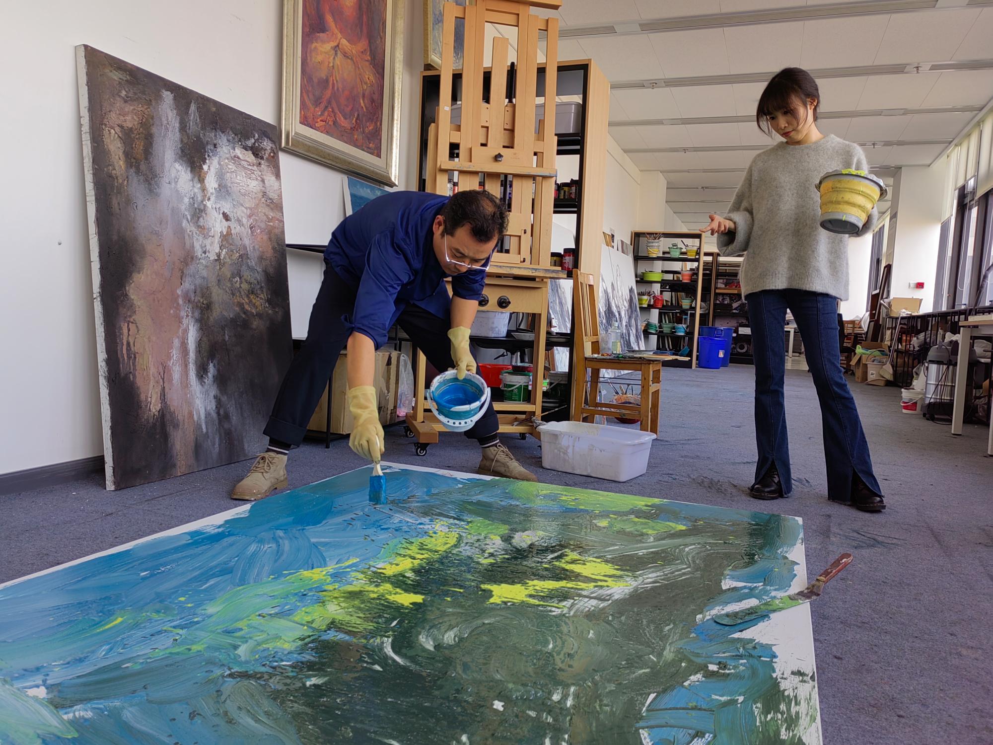 美术学科建设执行人、综合材料绘画研究中心主任陈晟博士和调教