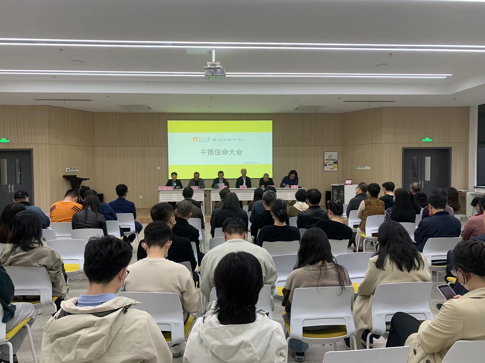 在黄庆苗黄陈月莉楼群主教学楼213会议室室召开干部宣布大会。校党委副书记冯杰、发展规划处处长汪盛科、学院党政班子领导和全体教职工参加,学院党委书记徐一萍主持会议。