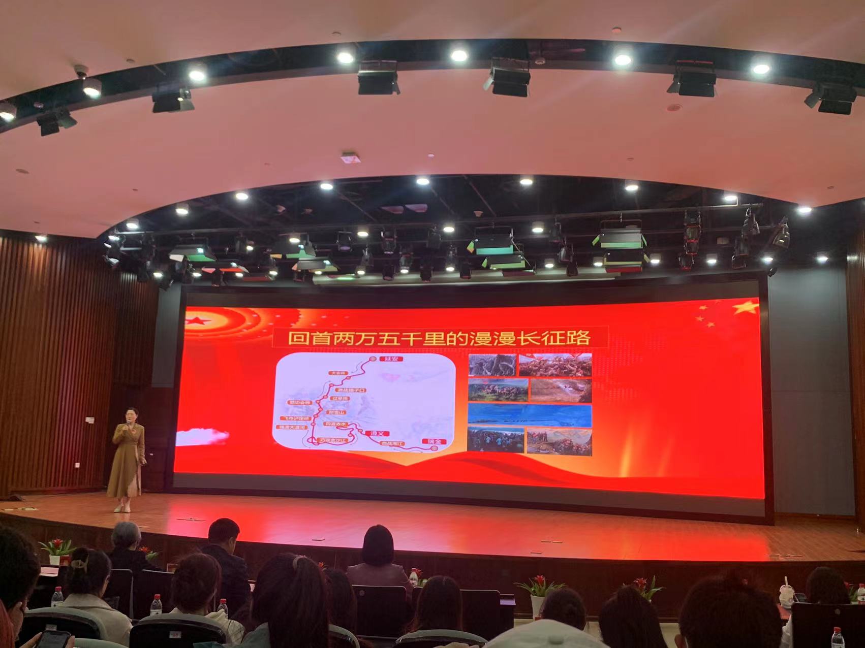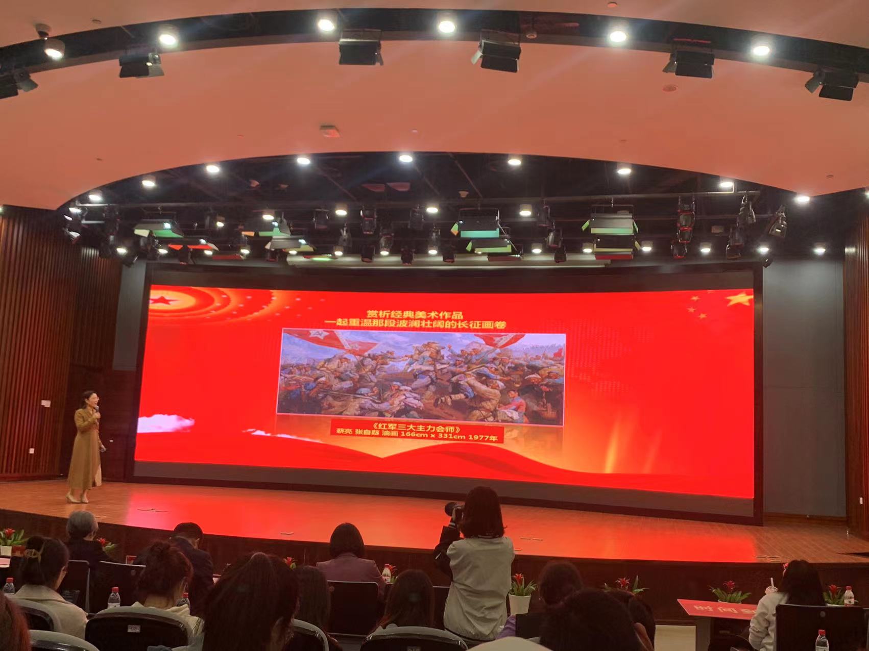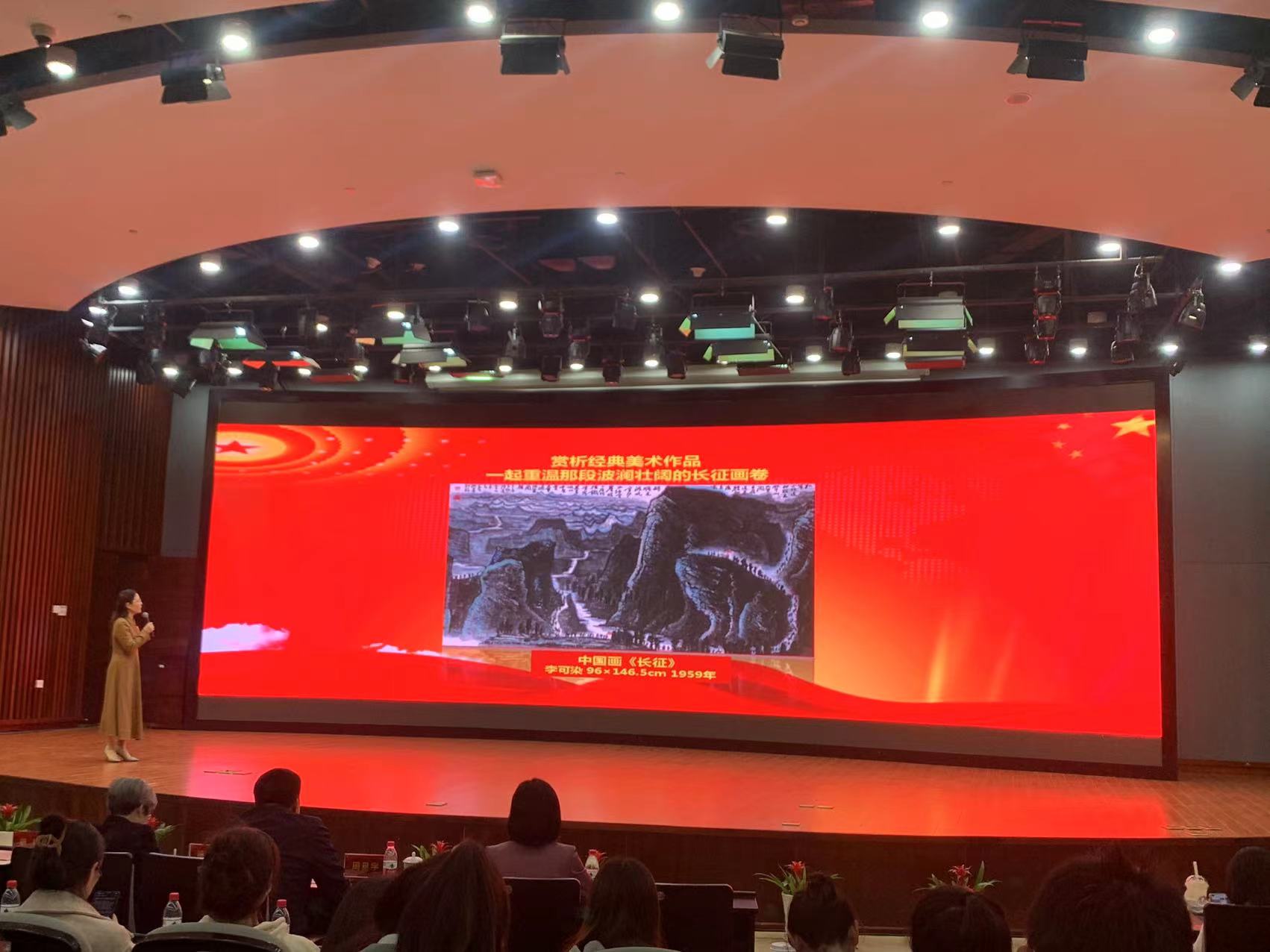 本次赛事,由校党委组织部、党委宣传部、校团委联合举办,以“续写‘八八战略’大文章,投身‘两个先行’走在前”为主题,分设教师组与学生组两个赛道。杨丽丽老师的微课《弘扬长征精神 谱写美育新画卷》,以画家李可染先生创作的经典国画作品《长征》和蔡亮、张自薿先生创作的油画《红军三大主力会师》赏析着手,通过经典美术作品赏析,和现场师生一起重温了长征精神和那段波澜壮阔的历史画卷。随后,杨丽丽老师指出,一代人有一代人的长征路,高校美育工作者要走好这一代人的长征路。她声情并茂地讲述了学院通过挖掘基础教学课程中的美育思政元素,强化育人实效;探究并实践“美育+思政”模式,让美育走出课堂、融入校园,走向社会,服务社会主义文化强国建设的系列做法。最后,杨老师表示,将牢记习近平总书记殷殷嘱托,从长征精神中汲取奋进力量,在传承和弘扬中华美育事业中,坚定新时代美育事业理想信念,为实现中华民族全面伟大复兴和实现人民精神共同共同富裕而不懈奋斗。