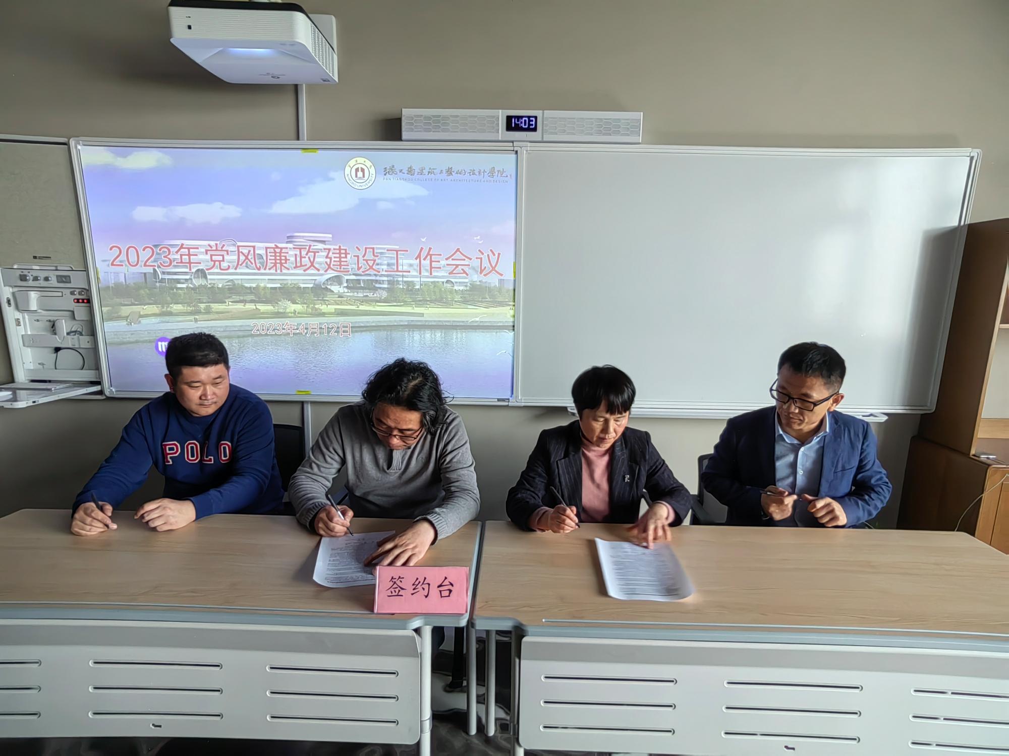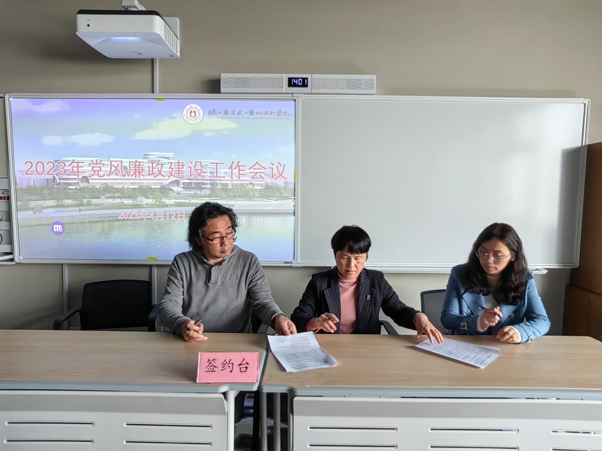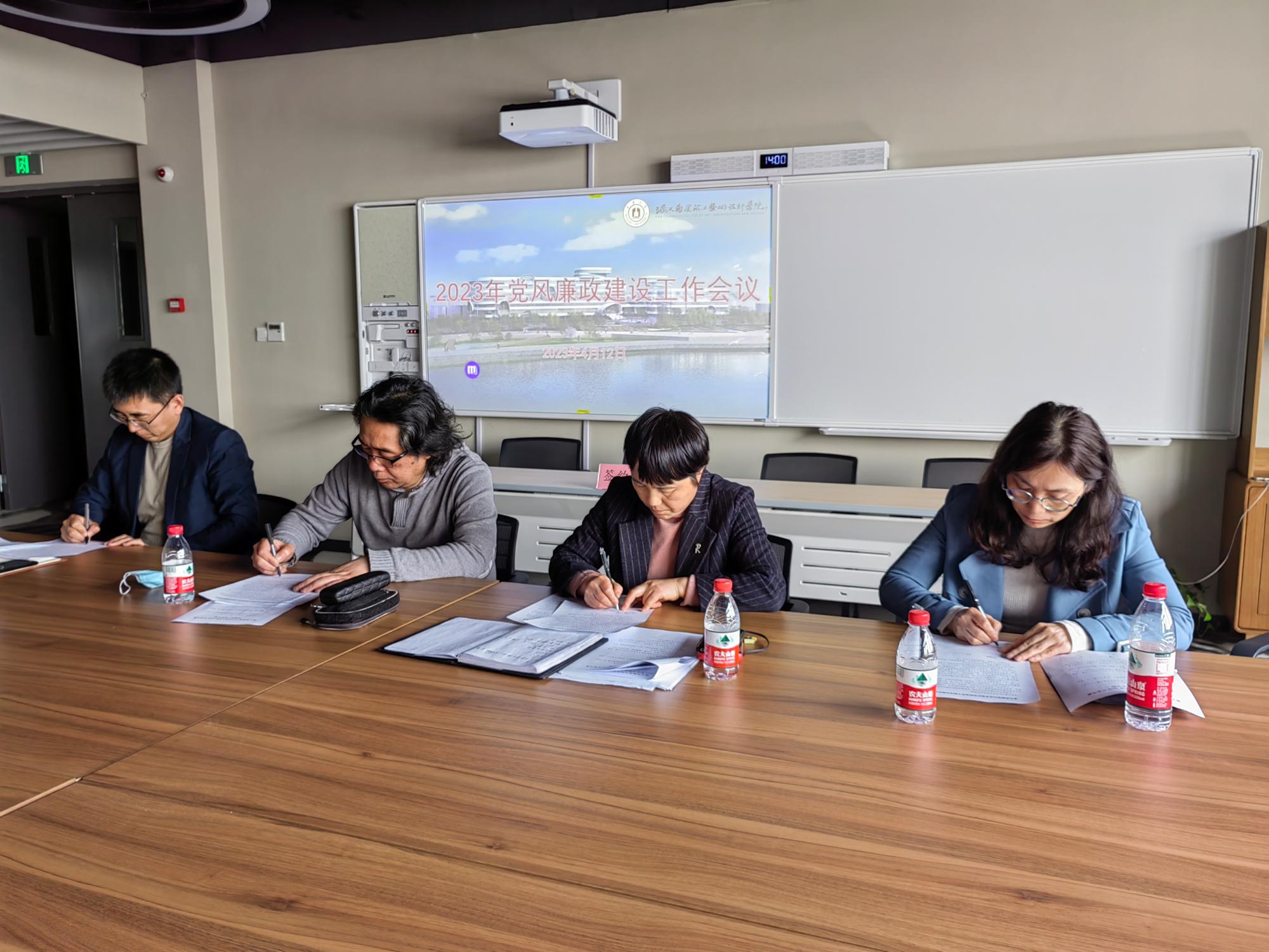 徐一萍书记首先传达了学校2023年全面从严治党工作暨“清廉宁大”建设推进会精神,并布置“清廉学院”建设相关工作。随后学院领导一一签署廉政承诺书;学院执行院长陆海、党委书记徐一萍分别与分管院领导、各系部办主任、教师党支部书记签署党风廉政建设责任书。