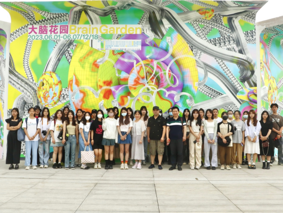 第一站老师与同学们来到了世界旅游博览馆,参观中国美术学院毕业展(湘湖展区),并拍摄了大合照。
