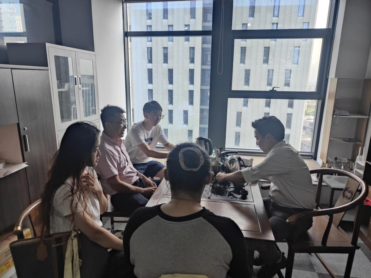 暑假期间,学院党委副书记刘秉印、创新创业辅导员蔡黎明以及部分学生一行人前往镇海韵恒大厦,走访2018届产品设计专业校友樊荣。樊荣在校期间就成立了宁波凡凡工业设计有限公司,从最初深耕厨卫产品设计,到如今转向数码装备、时尚灯具等多领域设计企业,樊荣在创业道路上也是小有成就。刘秉印副书记向樊荣介绍了学院近年来的发展与未来规划,也希望公司能与学院继续保持联系,在大学生创新创业、就业等方面不断合作,共同提高潘艺学院在社会上的影响力。