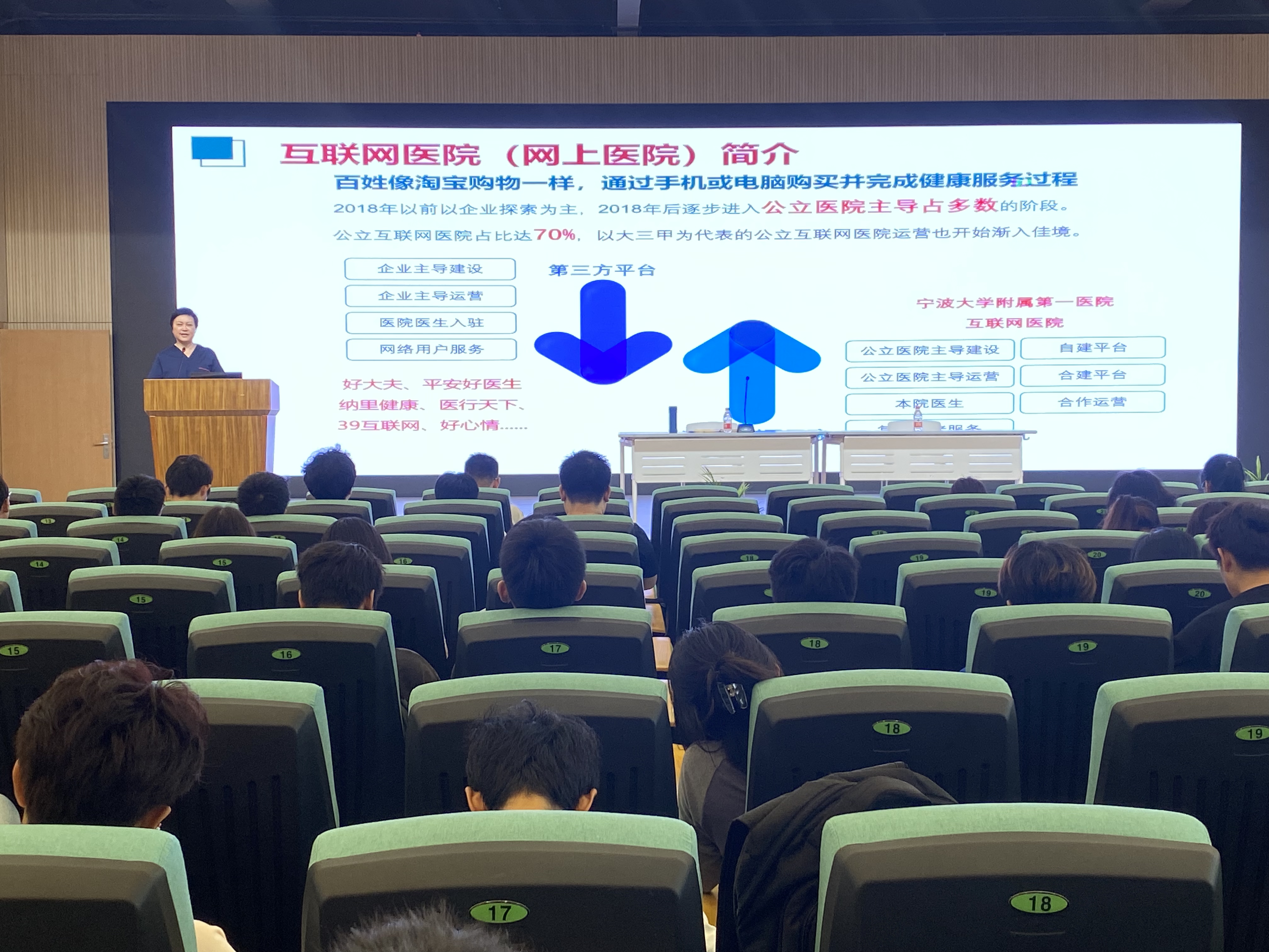 附属第一医院副院长许素玲首先围绕互联网医院,向同学们介绍了国内互联网医院发展现状、发展趋势以及调教
