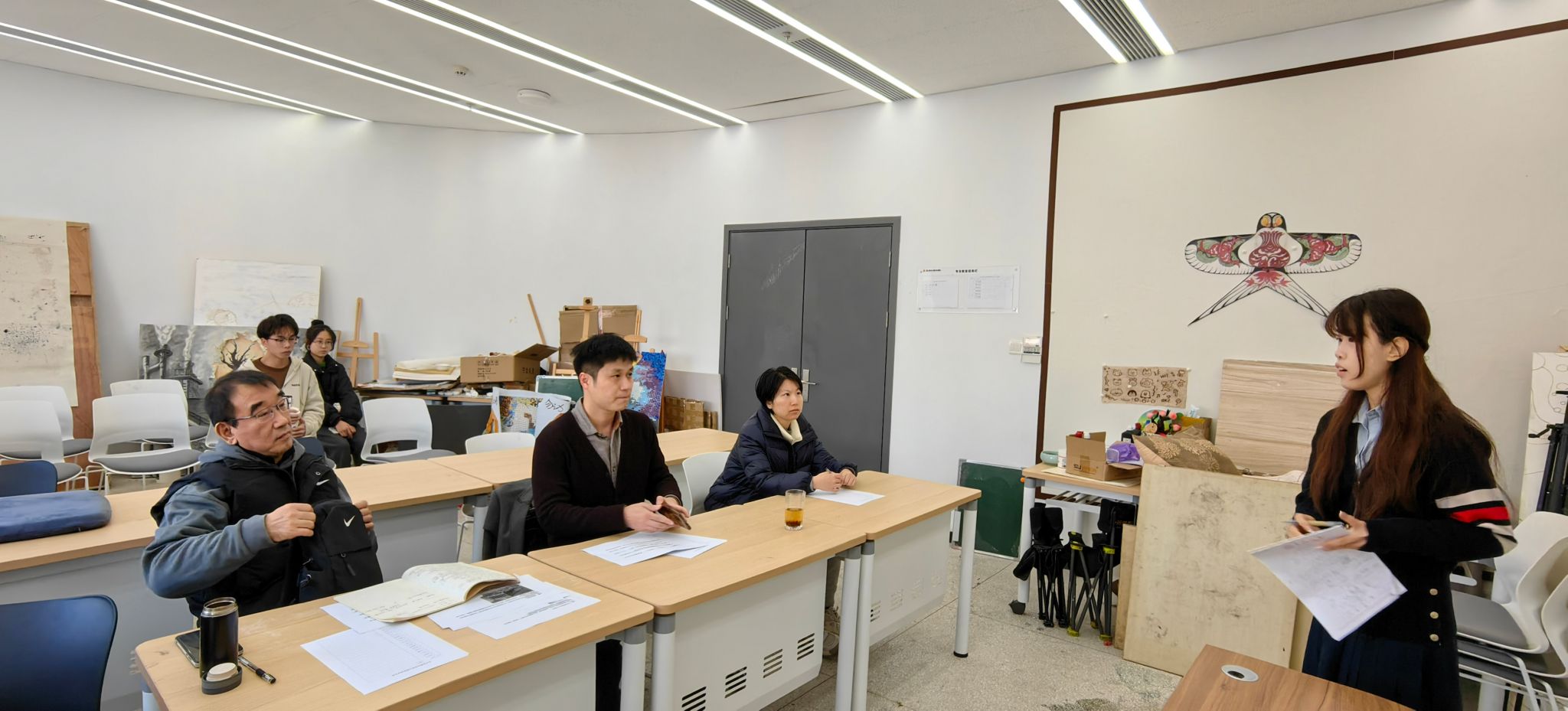 为提高美术系本科生教师资格证通过率,美术系于12月6日组织大三、大四学生在潘艺教学楼609进行模拟面试,并邀请相关专家进行指导。