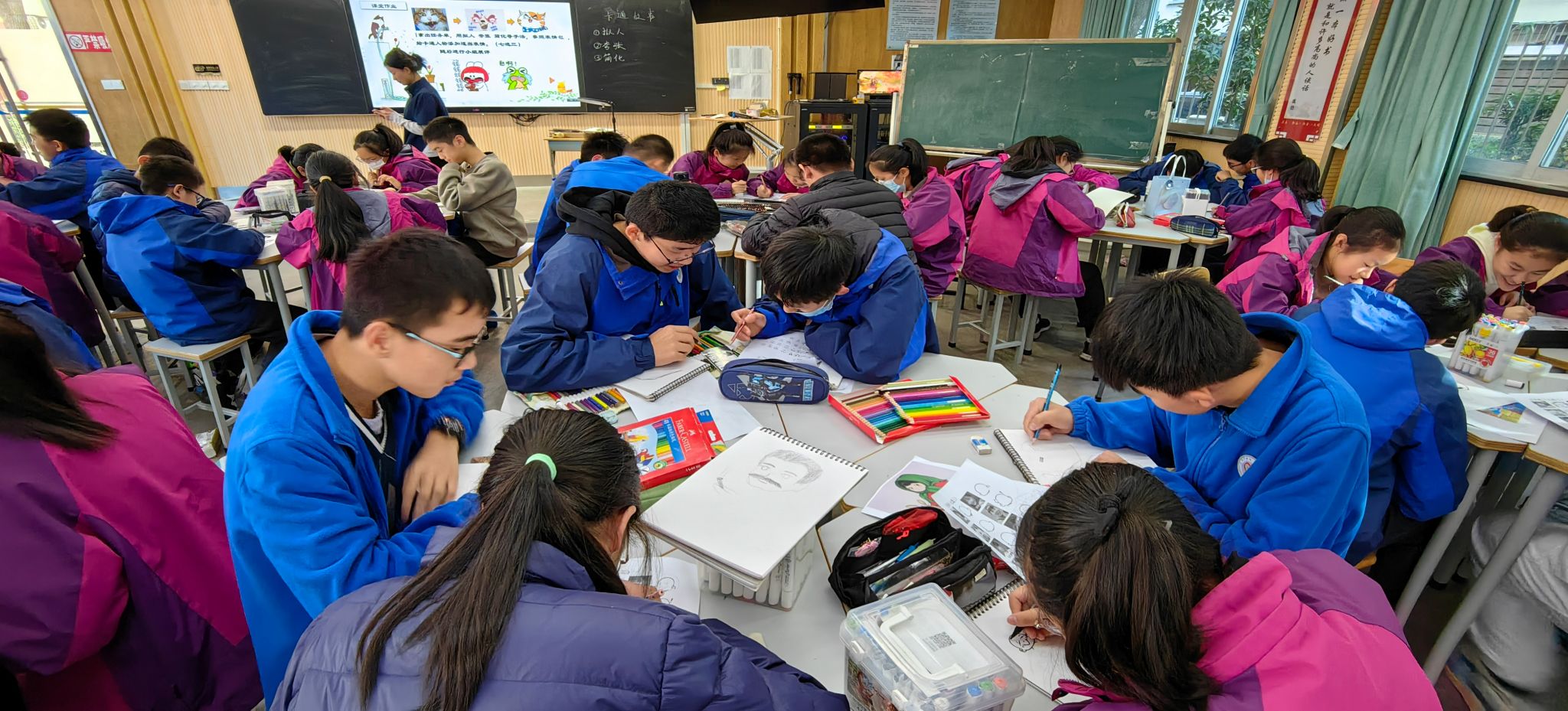12月14日调教 潘艺美术系实习总结汇报课于下午13点55分正式开始。本次公开课的汇报人是2020级美术学师范专业学生余小雨、韦雅鹏、王睿、王梦迪、陶沙、梁欣城和颜天冲,仁爱中学范晓晶副校长、美术教师汪洪和丁赞学陪同调教 刘秉印副书记、美术系主任陈晟和副主任刘利波听取了汇报。